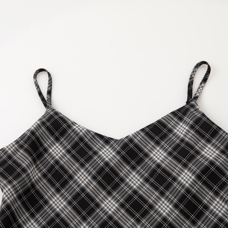 アシメデザインが目を引くチェック柄のキャミワンピ♡