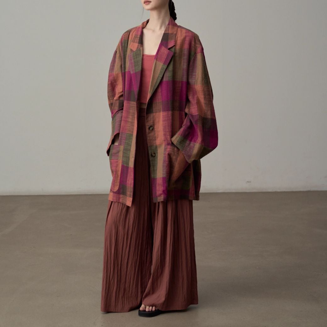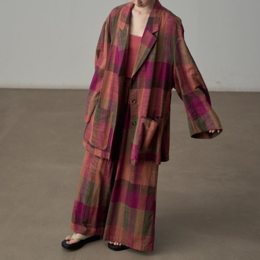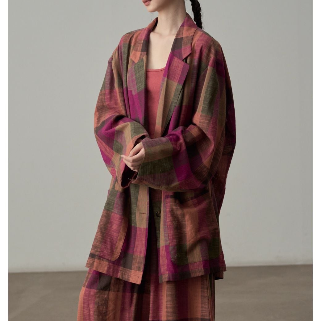 秋らしい暖色系カラーに、大きめのチェック柄が存在感をプラス*