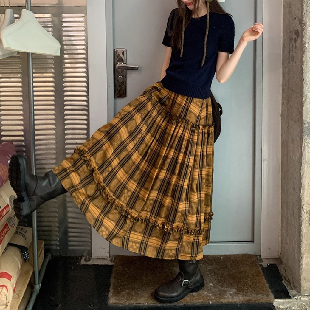 《お届けについて》 当shopの商品は海外より取り寄せ・発送となる為 ご入金から2〜4週間でお届けいたします。 ・・・・・・・・・・・・・・・・・・・・・・・・ 秋ムード高まるチャック柄×ジャガードスカート。 カラーは上品な black × white と、華やかさを添える black × yellow の2色展開。 クラシカルに仕上げ、大人かわいい印象を演出してくれます。 ◆ サイズ(cm):XS、S、M、L XS 着丈:82 ウエスト:60-72(伸縮性あり) S 着丈:83 ウエスト:62-74(伸縮性あり) M 着丈:84 ウエスト:66-78(伸縮性あり) L 着丈:85 ウエスト:70-82(伸縮性あり) [ Model / 165cm 着用サイズ S ] ◆ カラー black × white / black × yellow ◆ 素材 綿80%、その他20% [ 商品管理番号:25AW_0011 ] 【 注意事項 】 誠に恐れ入りますが、ご購入前に以下をご確認頂き ご承諾の上お買い求めくださいませ。 https://shop.mayc.design/about ・服や靴のサイズが日本のサイズ規格より小さい場合が ございます。サイズに不安があるお客様は、普段より 大きめサイズをお選びください。 ・日本製とは検品基準が異なる為、縫製などが若干甘い 場合があります。 ・海外倉庫にて保管をしております。 在庫情報に時差が生じますため在庫切れや生産中止、 生産に遅れがある場合は、受注後でもキャンセル させていただく恐れがございます。 ・商品の色味は、お手持ちのスマートフォンの画面に よって実物と若干異なる場合がございます。 ・発送時期によりデザイン仕様(細部、素材など)の 変更がある場合がございます。 ・イメージ違いやサイズ交換等、お客さまご都合による 交換、返品は対応出来かねます。 ◆人気ランキング https://shop.mayc.design/categories/3257402 ◆新商品入荷中!/SALE情報をcheck https://shop.mayc.design ◆当店Instagram https://www.instagram.com/mayc_official/