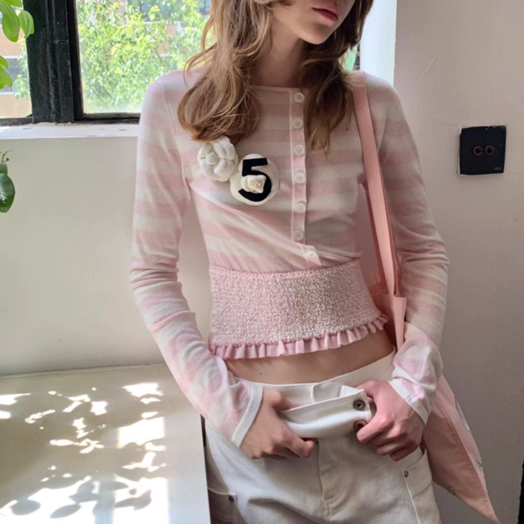 pink striped knitted top