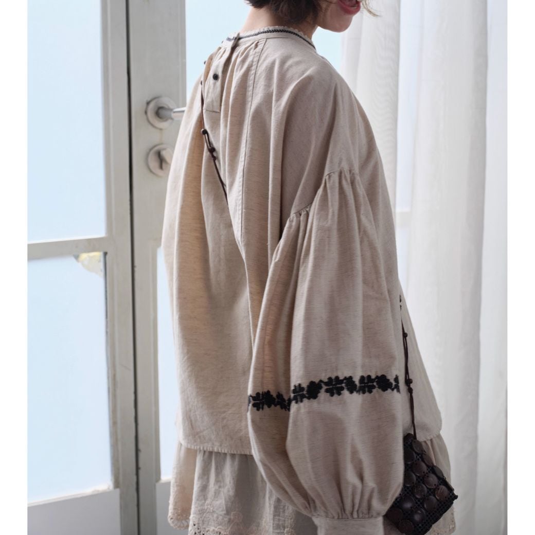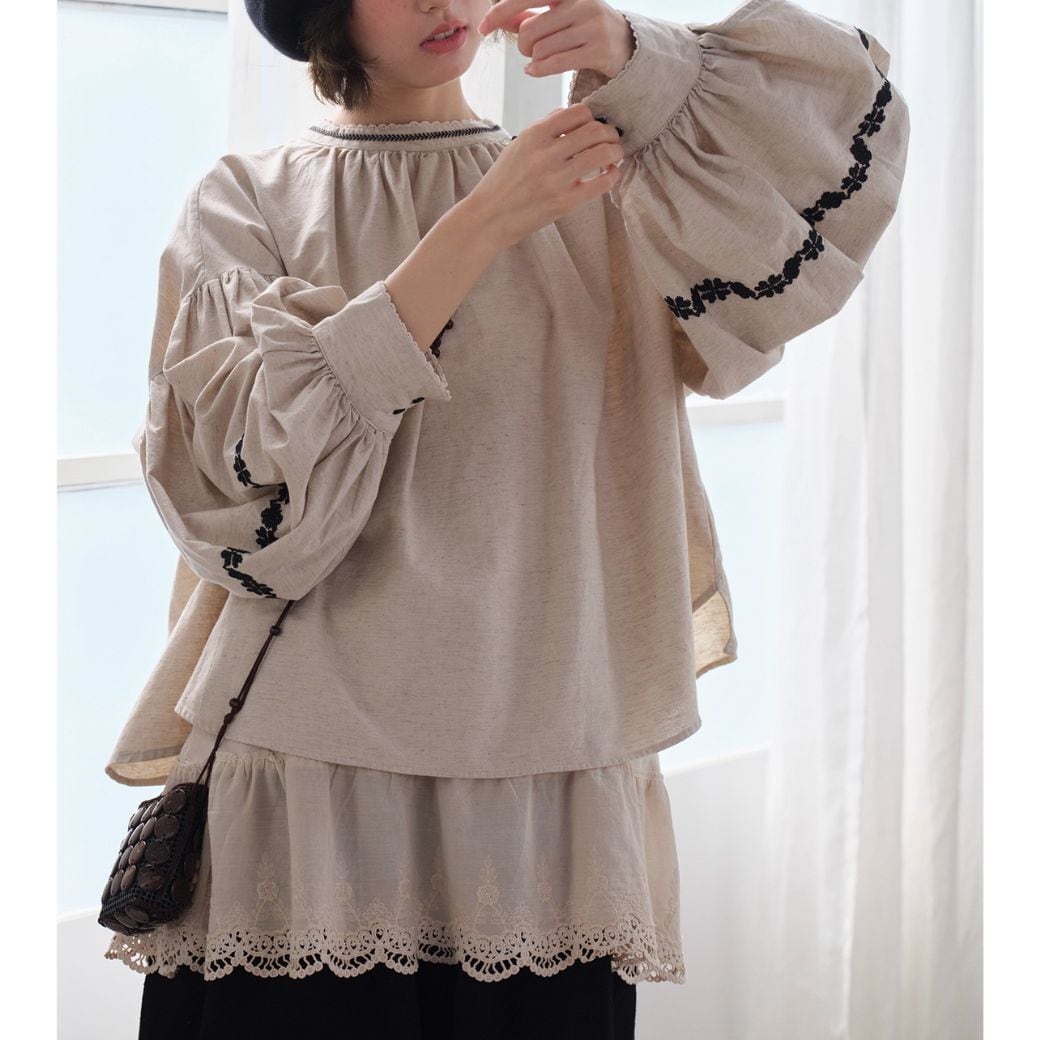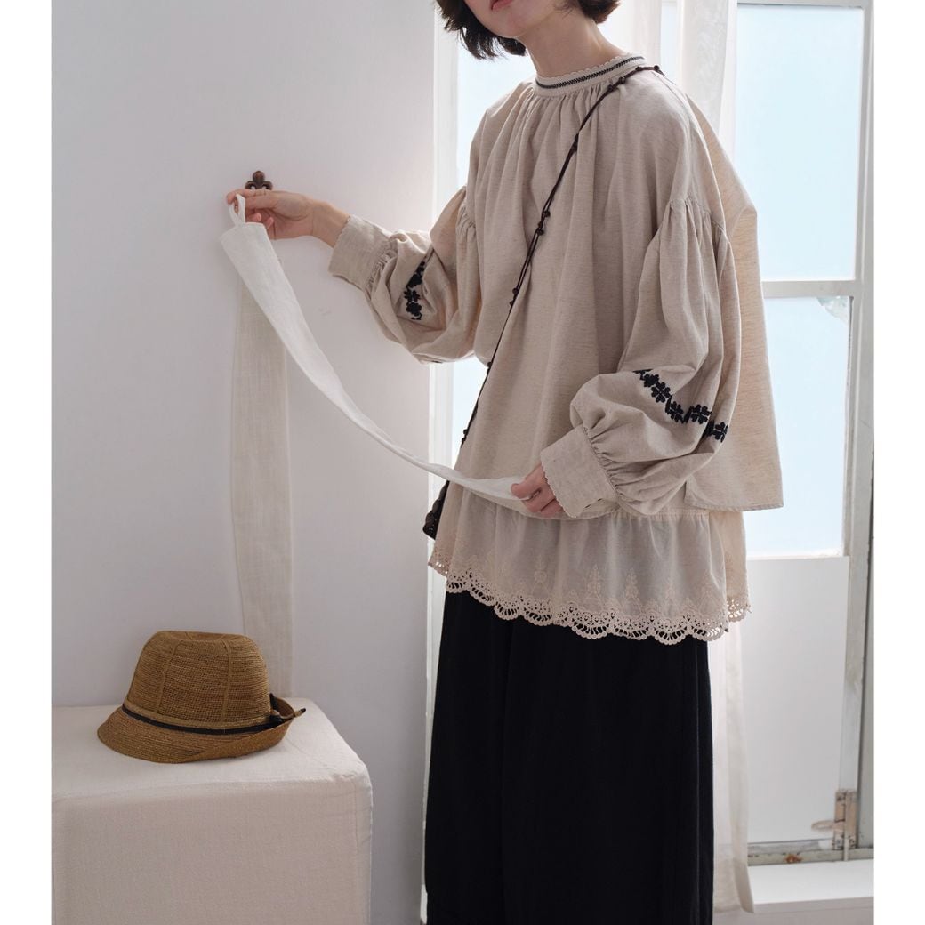 linen embroidered autumn design loose top