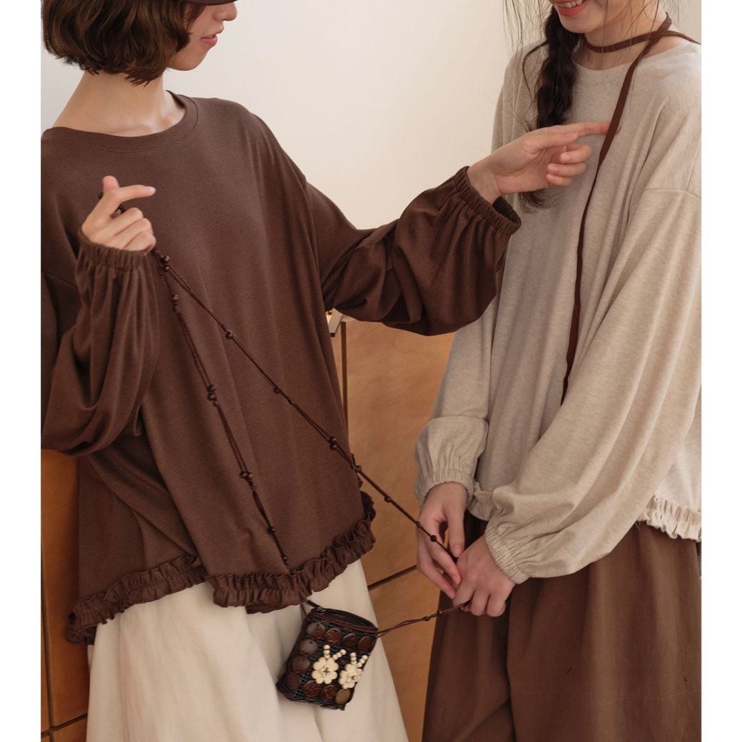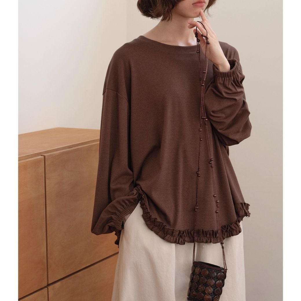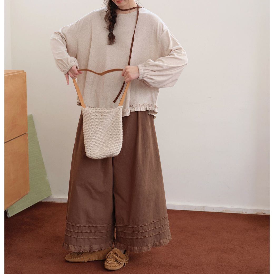 裾のさりげないフリルが女性らしさをプラスしつつ、