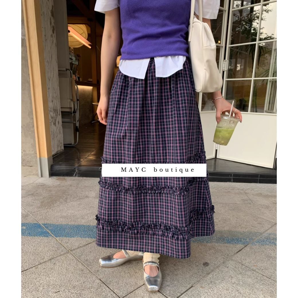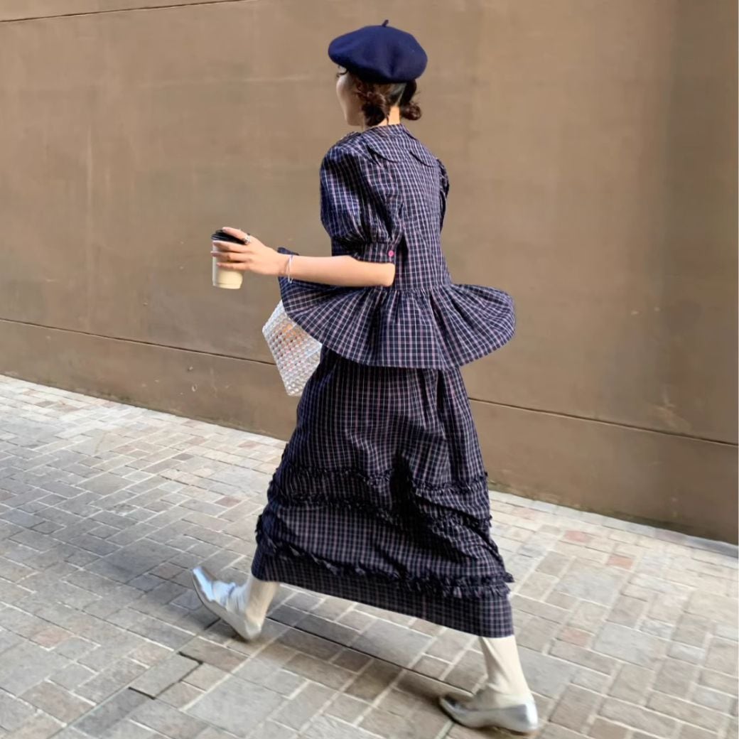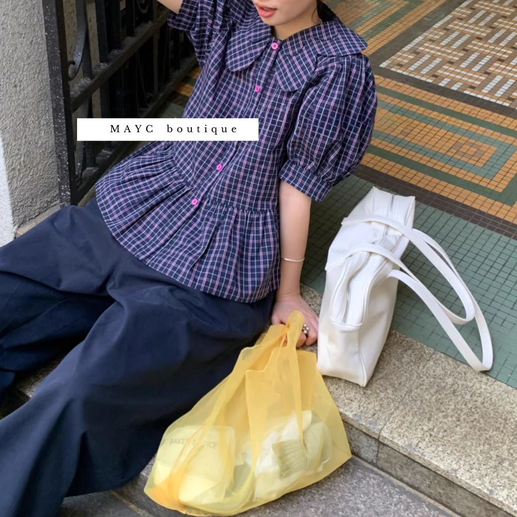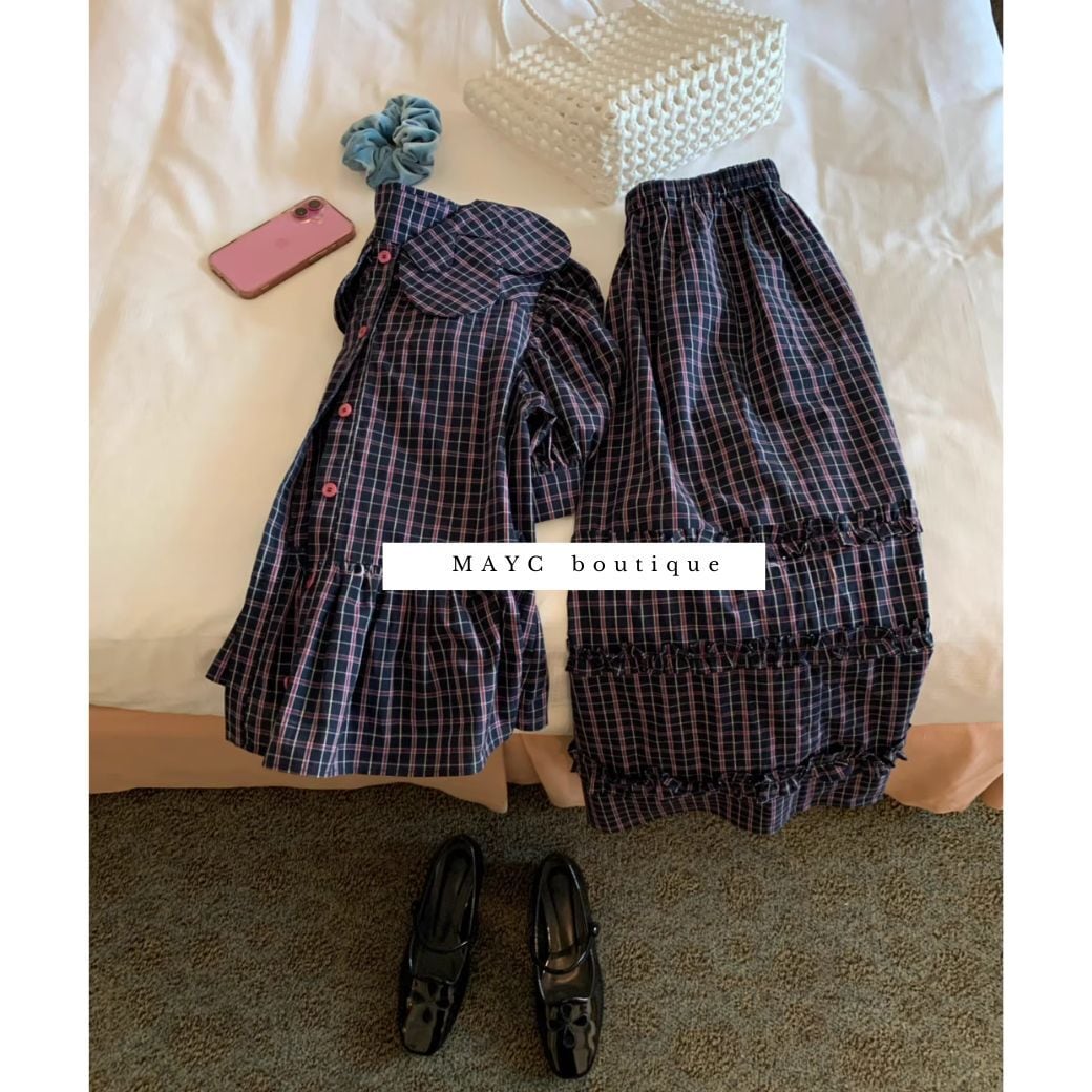 <★即納★> retro plaid puff sleeve top or skirt