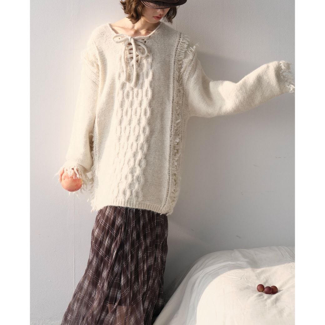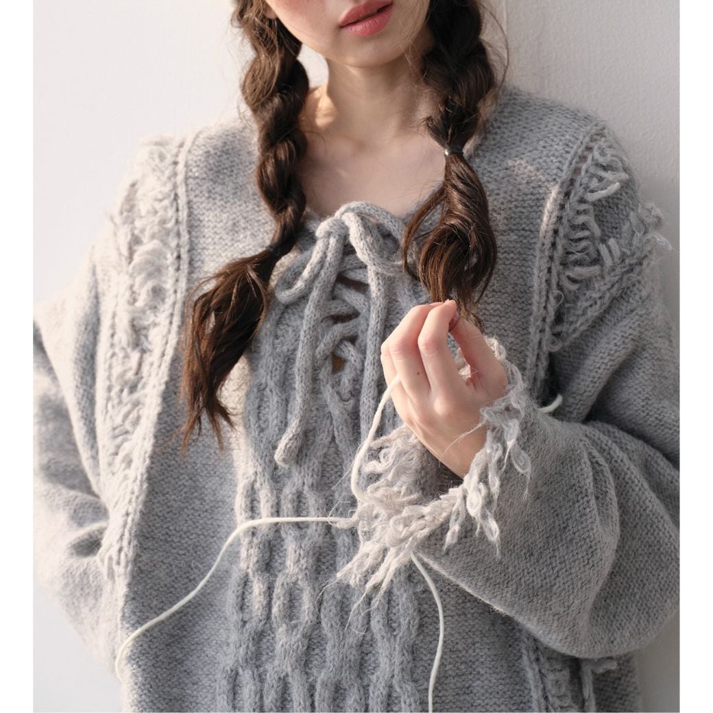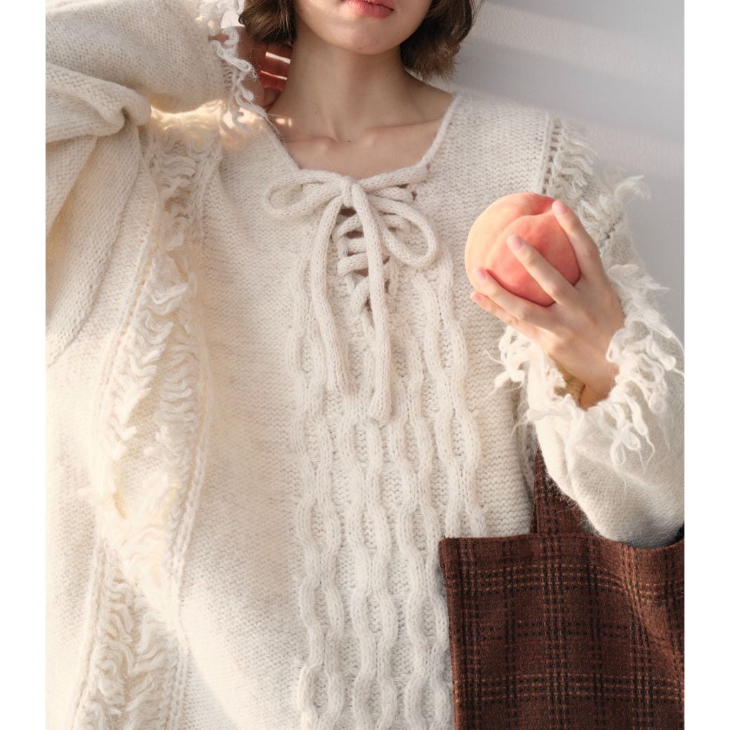 フロントの編み上げデザインが、甘すぎずアクセントに♡