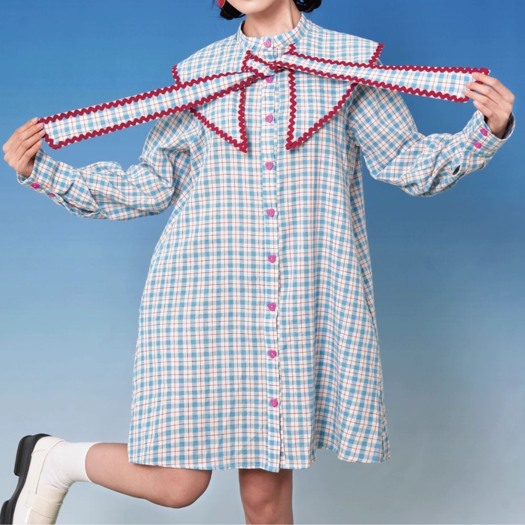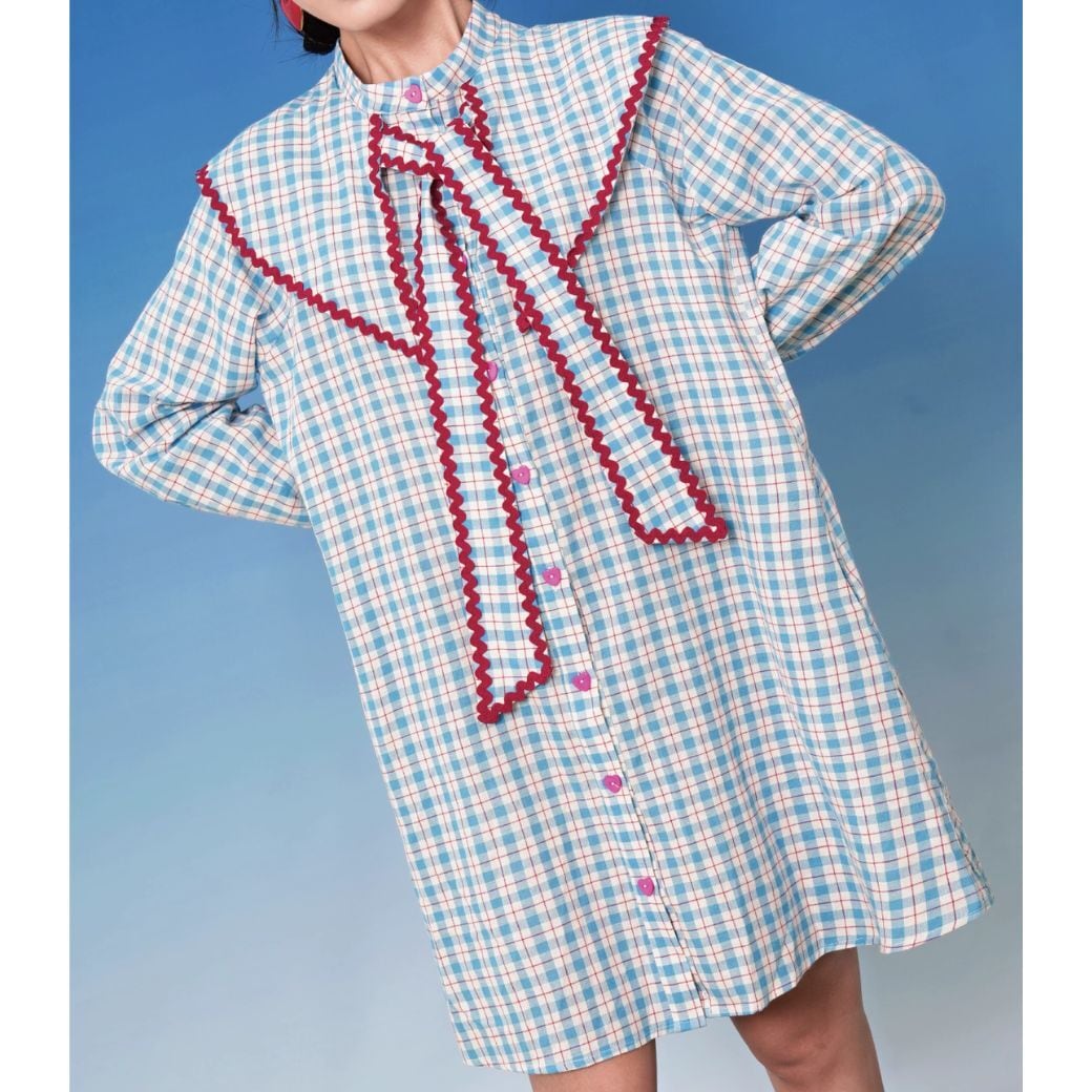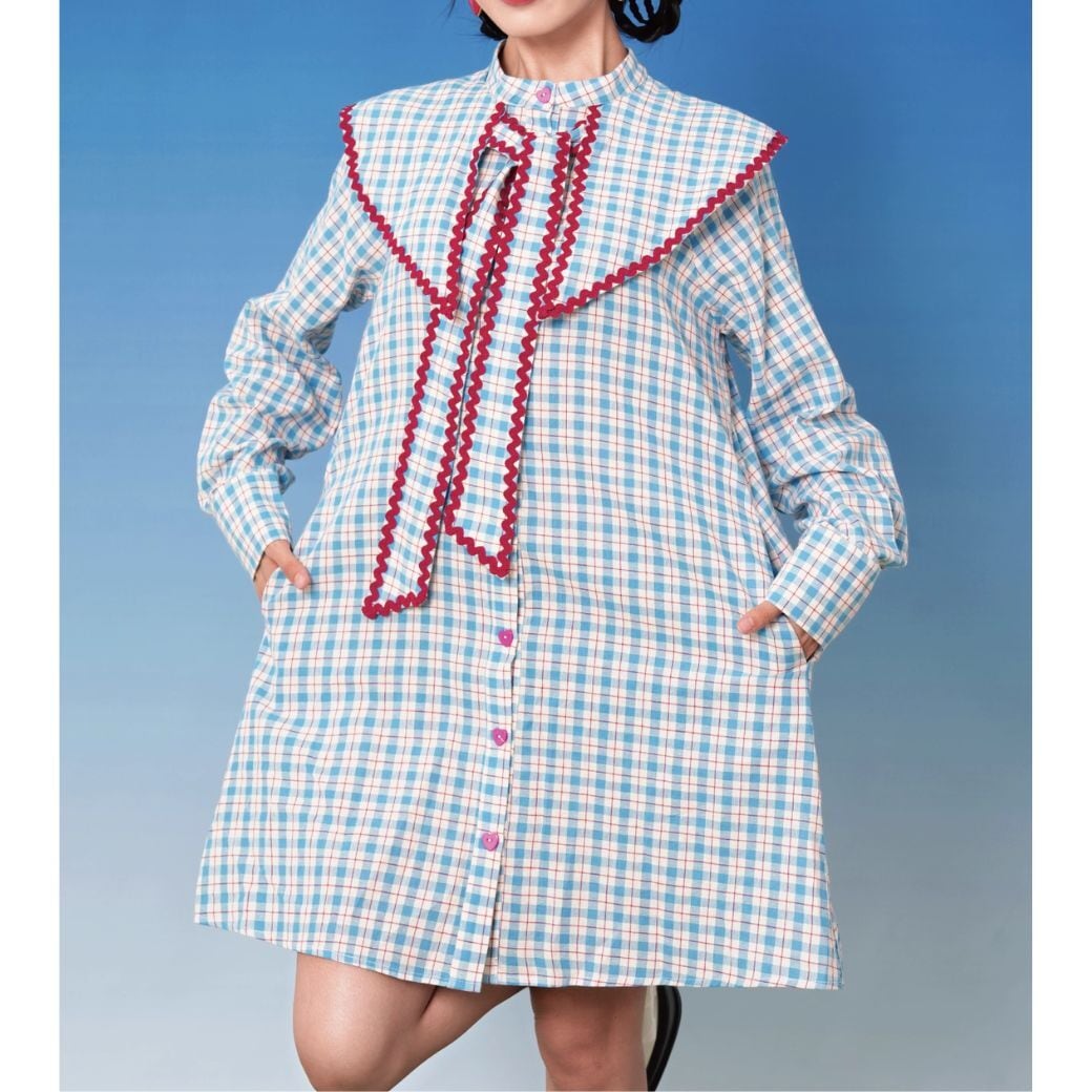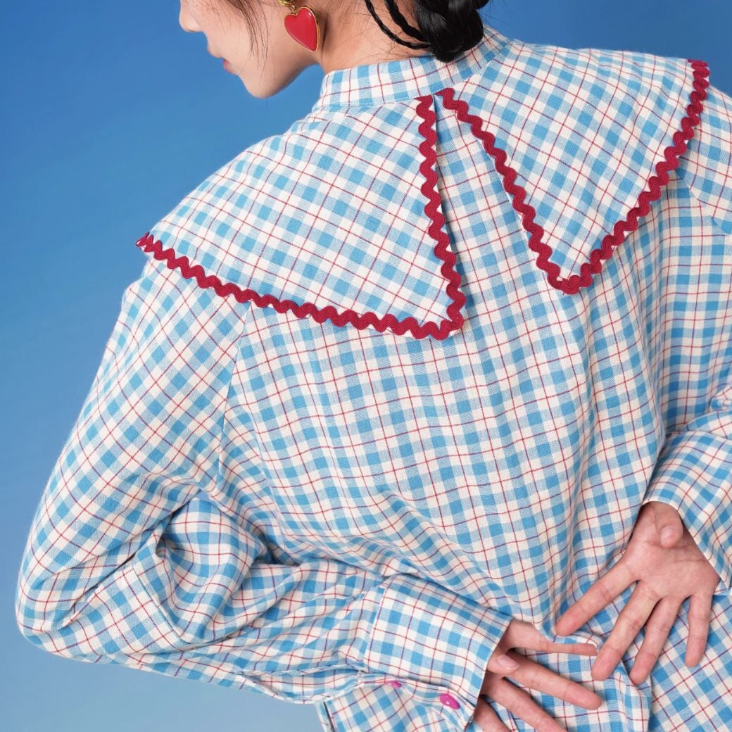 セーラー襟には、真っ赤なパイピングをあしらい、