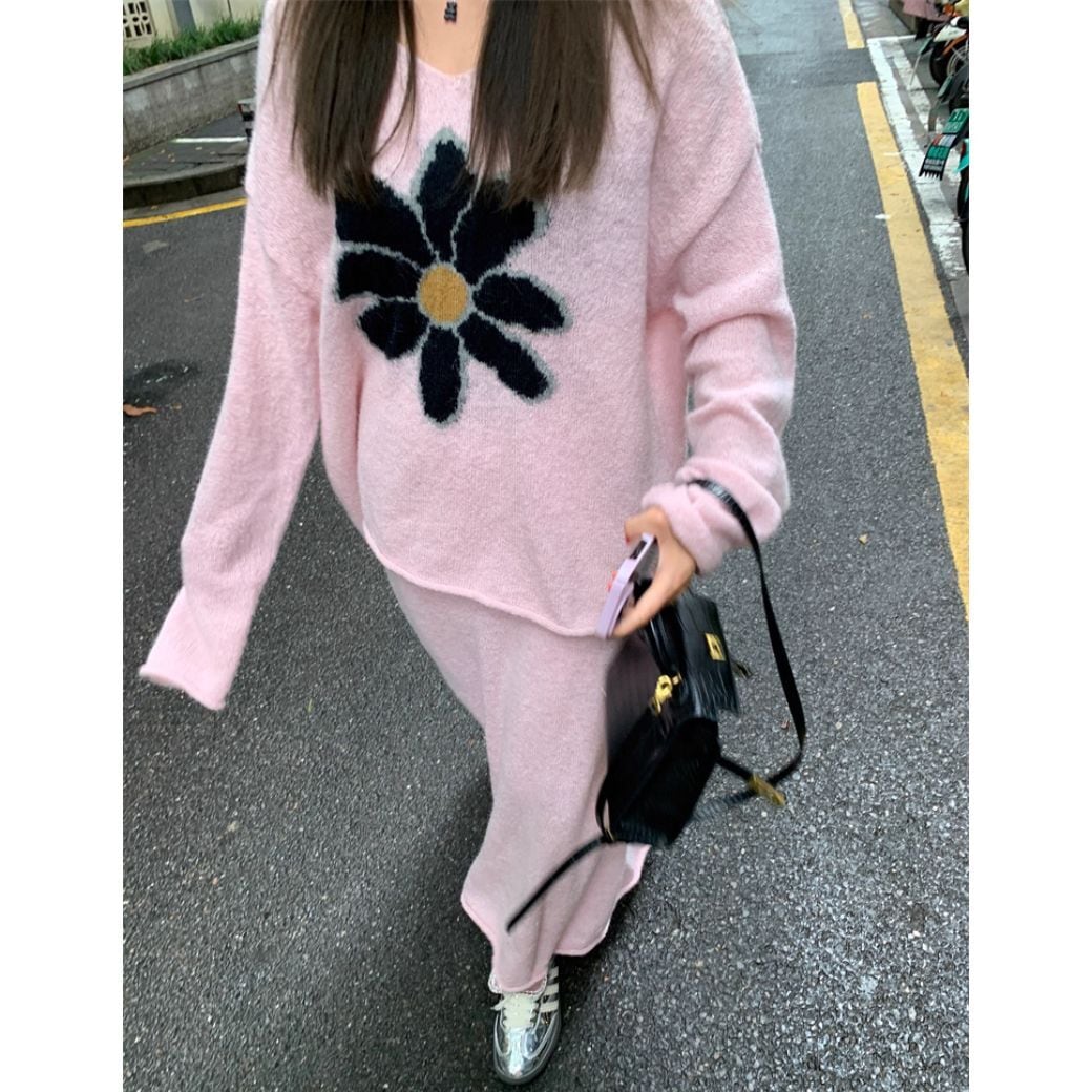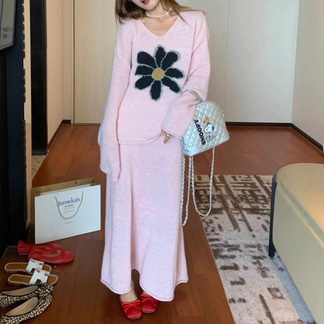 トップスには存在感のある大きめのフラワーデザインでガーリーな印象に♡