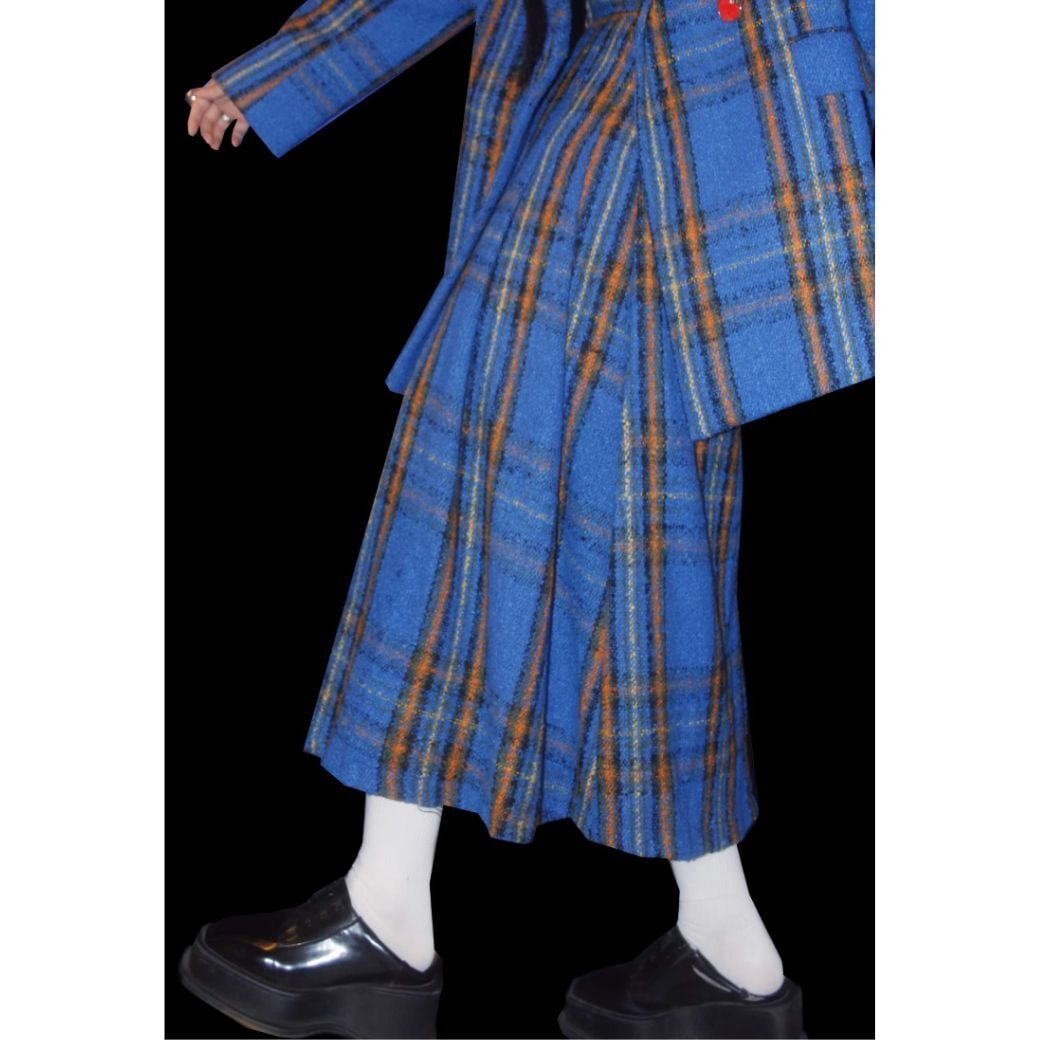 ブルーをベースにオレンジのチェック柄が映える冬素材ジャケット。