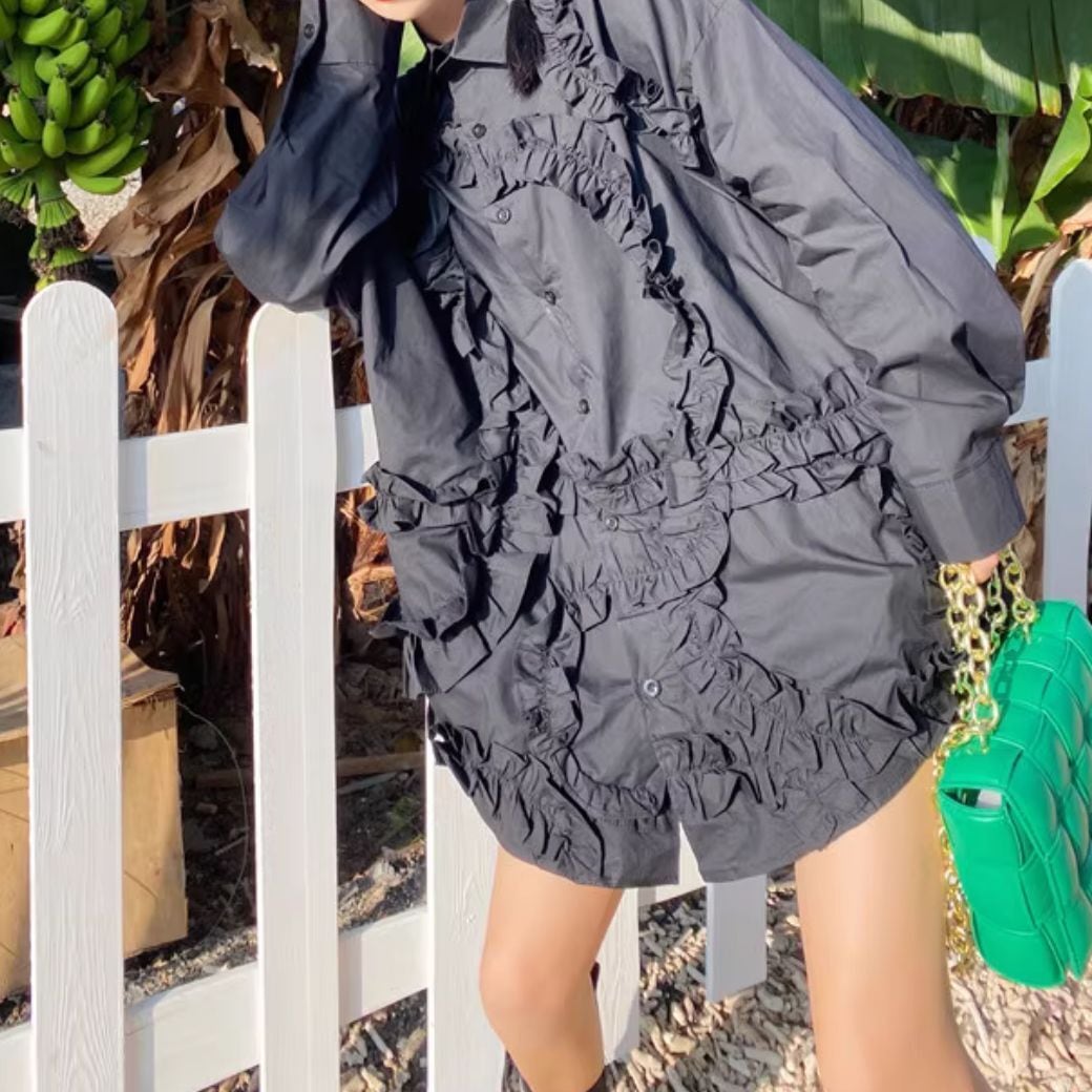 たっぷりフリルをあしらった、シャツブラウス*