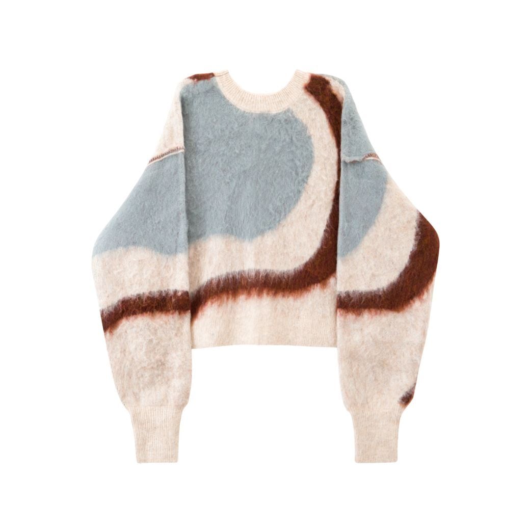 やさしいピンクに、グレーやブラウンカラーが広がるアートなニット♡