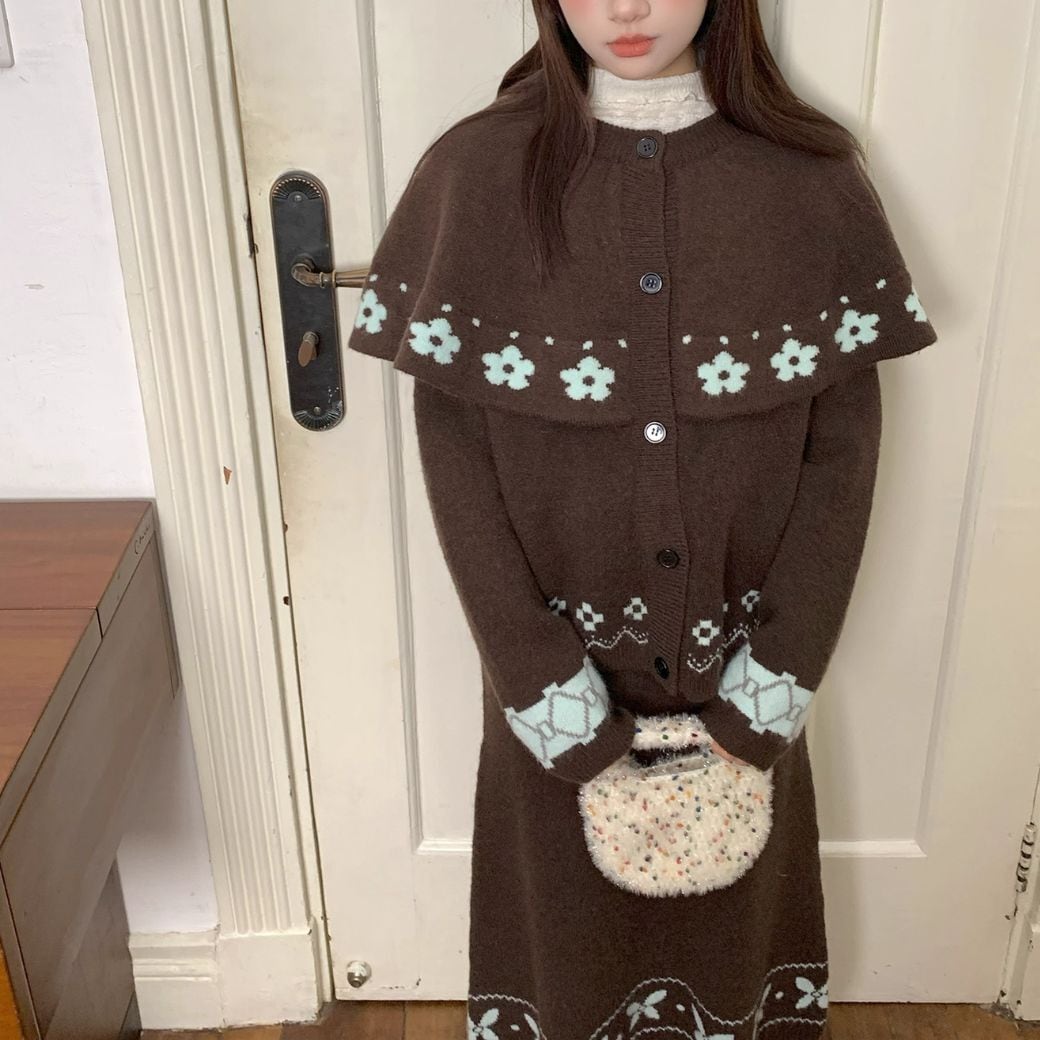 ブラウンに、ブルーの花模様が映えるノスタルジックなニット*