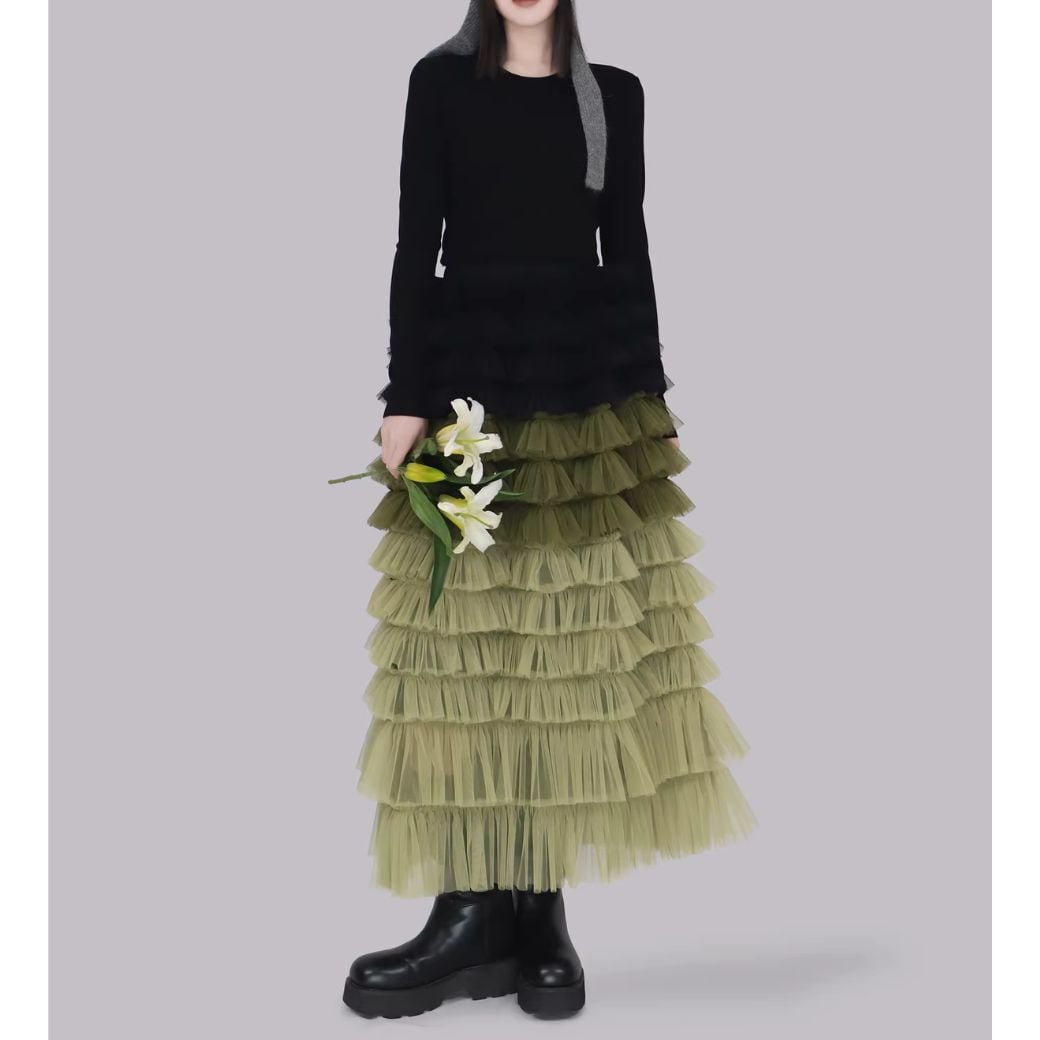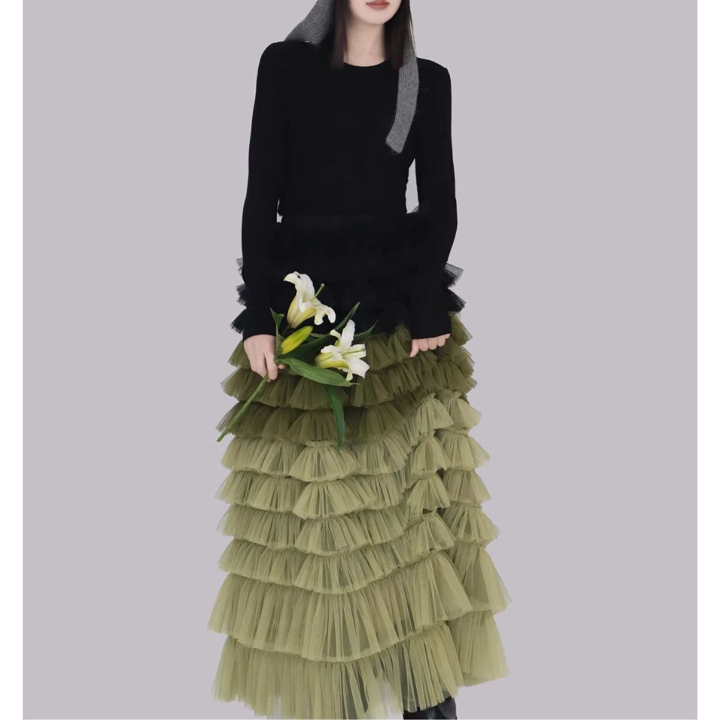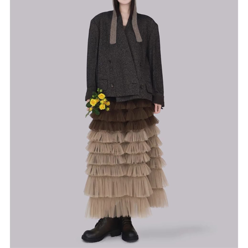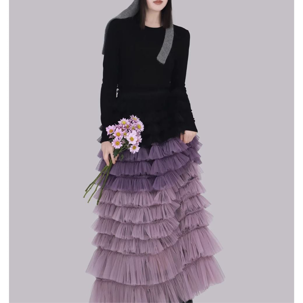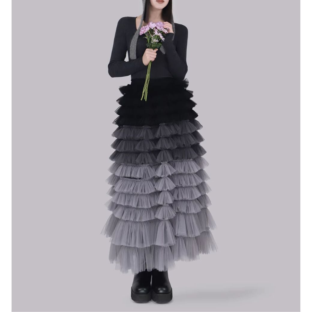 重なるチュールに、グラデーションカラーが映えるスカート。