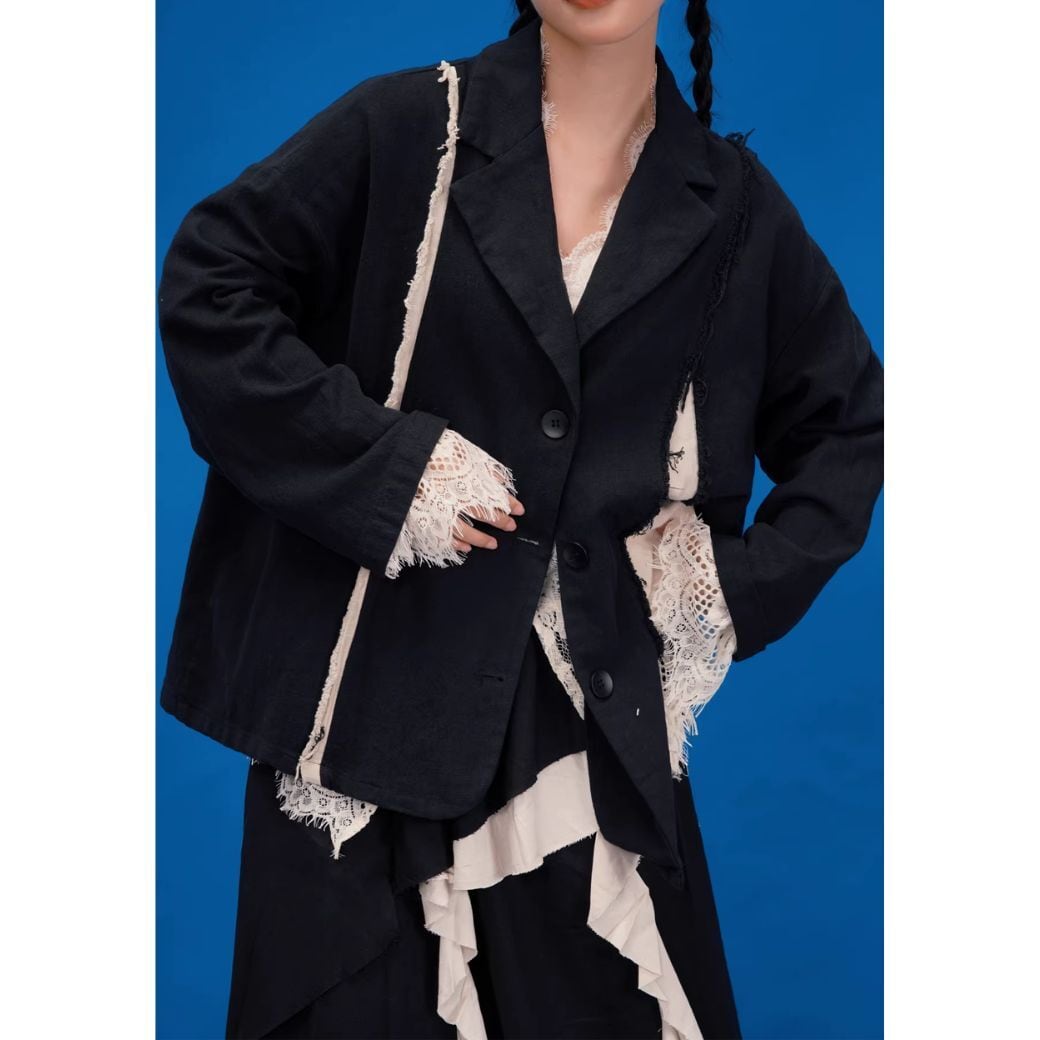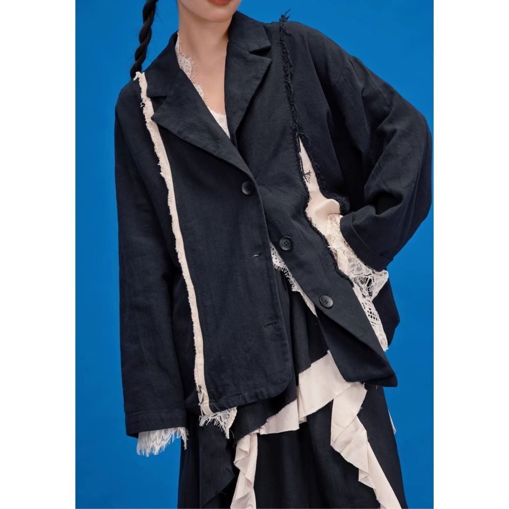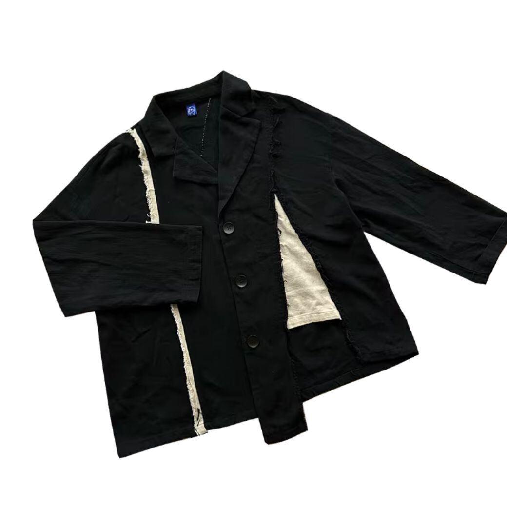 異なる生地を組み合わせたパッチワークデザインのジャケット♪