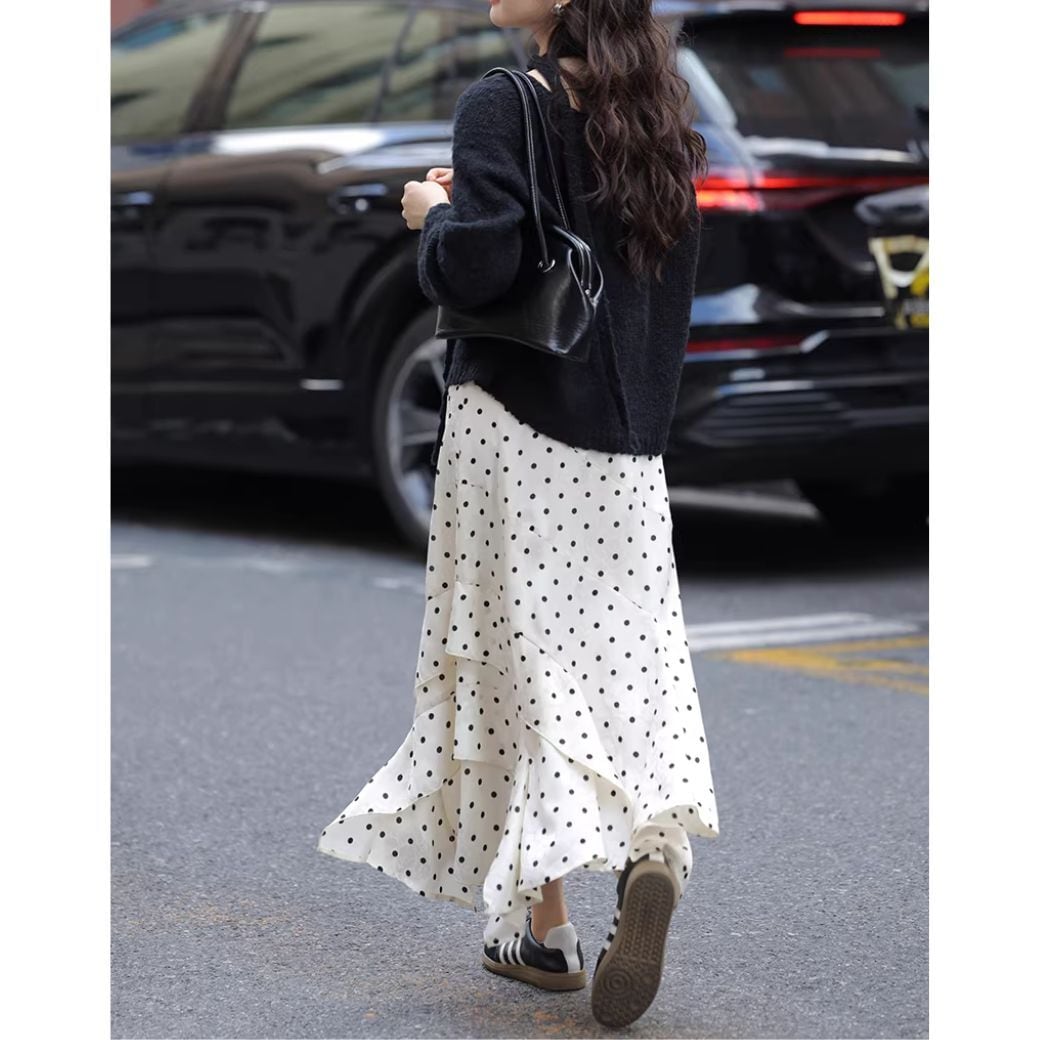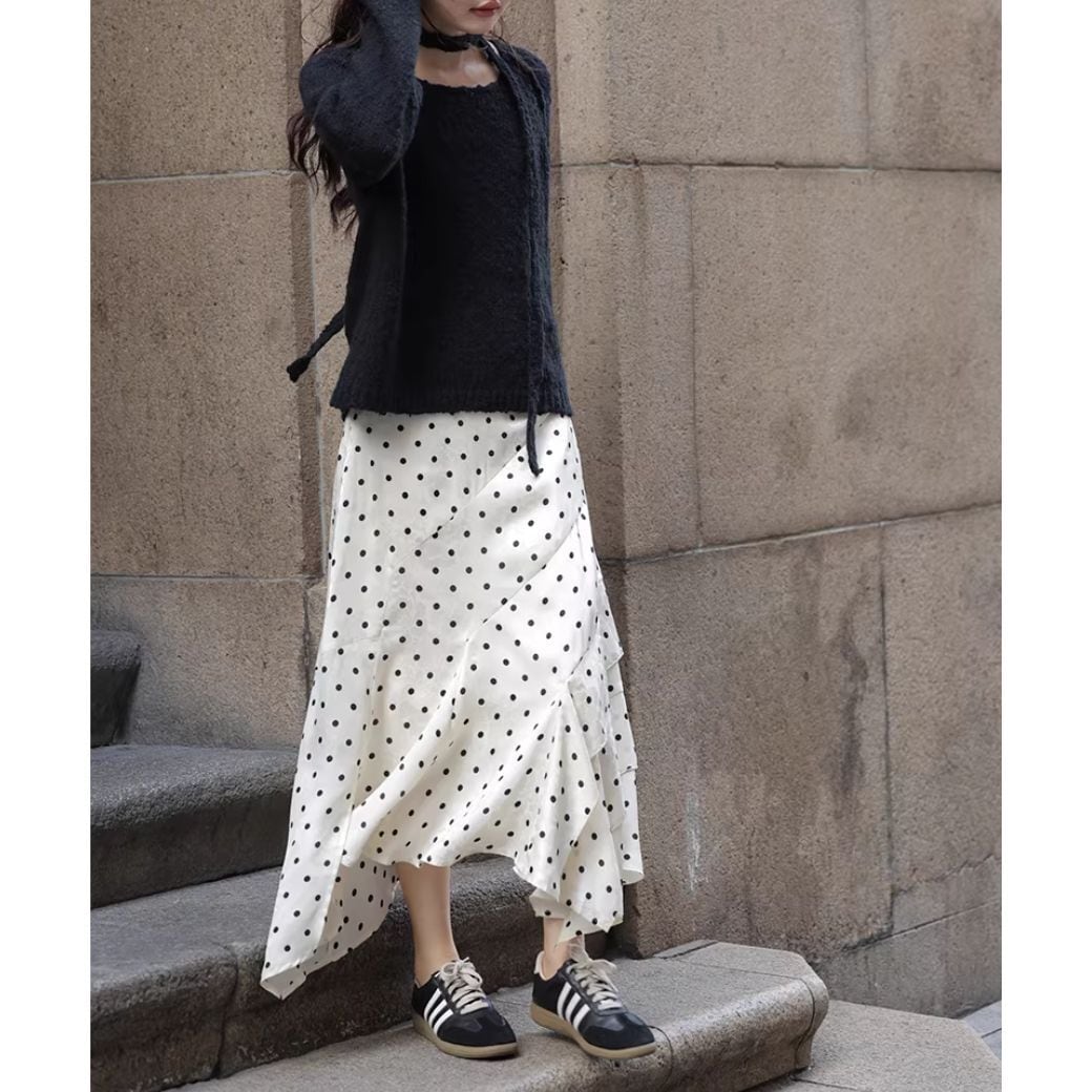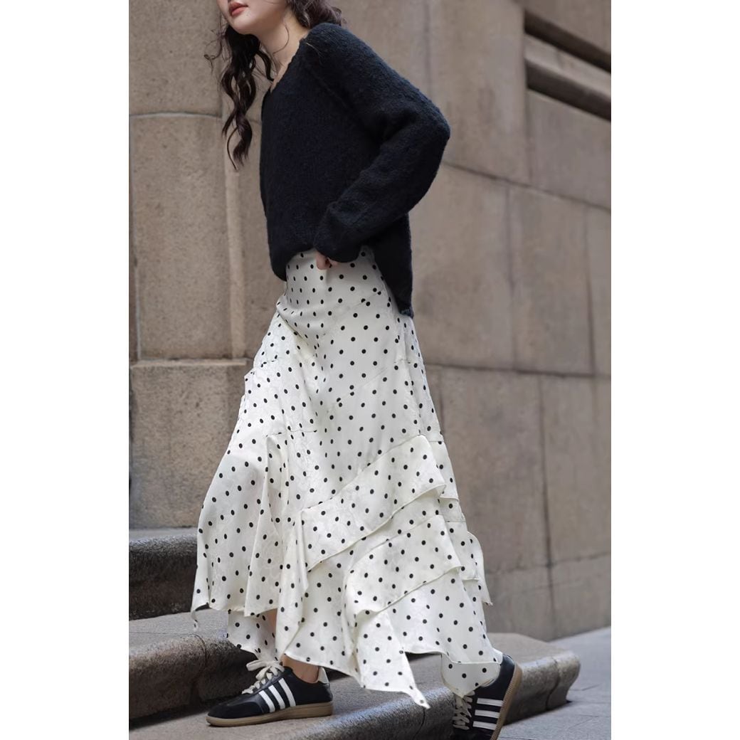 アシンメトリーにあしらわれたフリルが動くたびに揺れて、さりげなく華やかな印象に◎