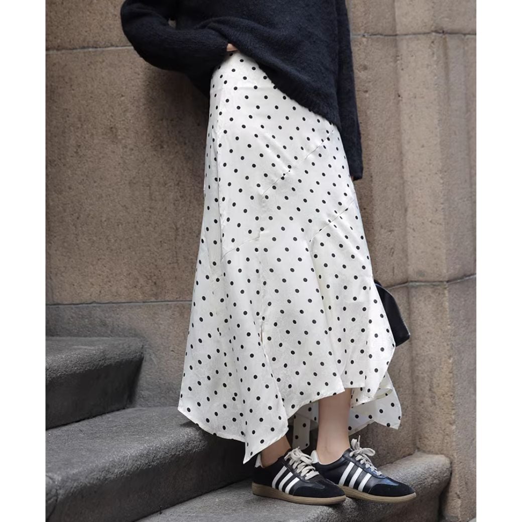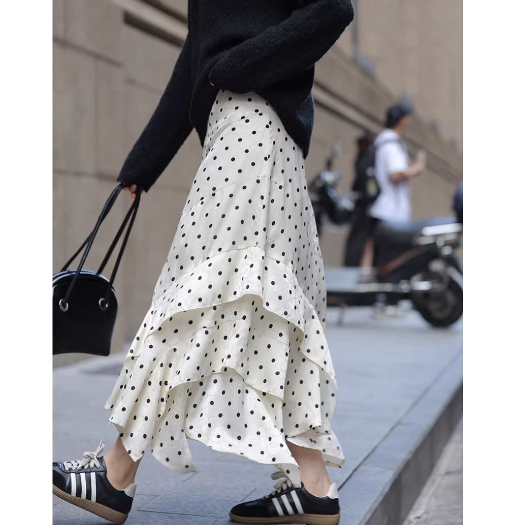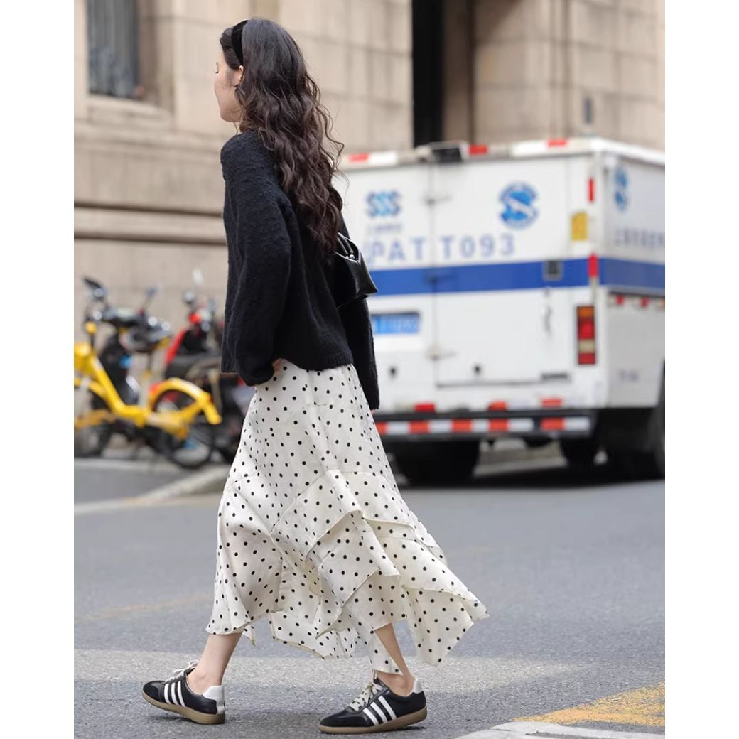 アシンメトリーにあしらわれたフリルが動くたびに揺れて、さりげなく華やかな印象に◎