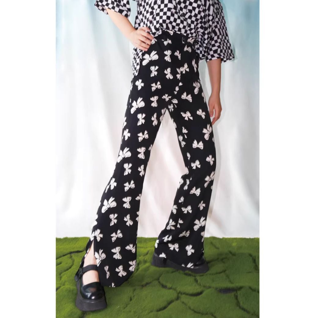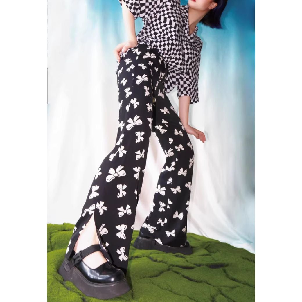 retro bow slit flared pants