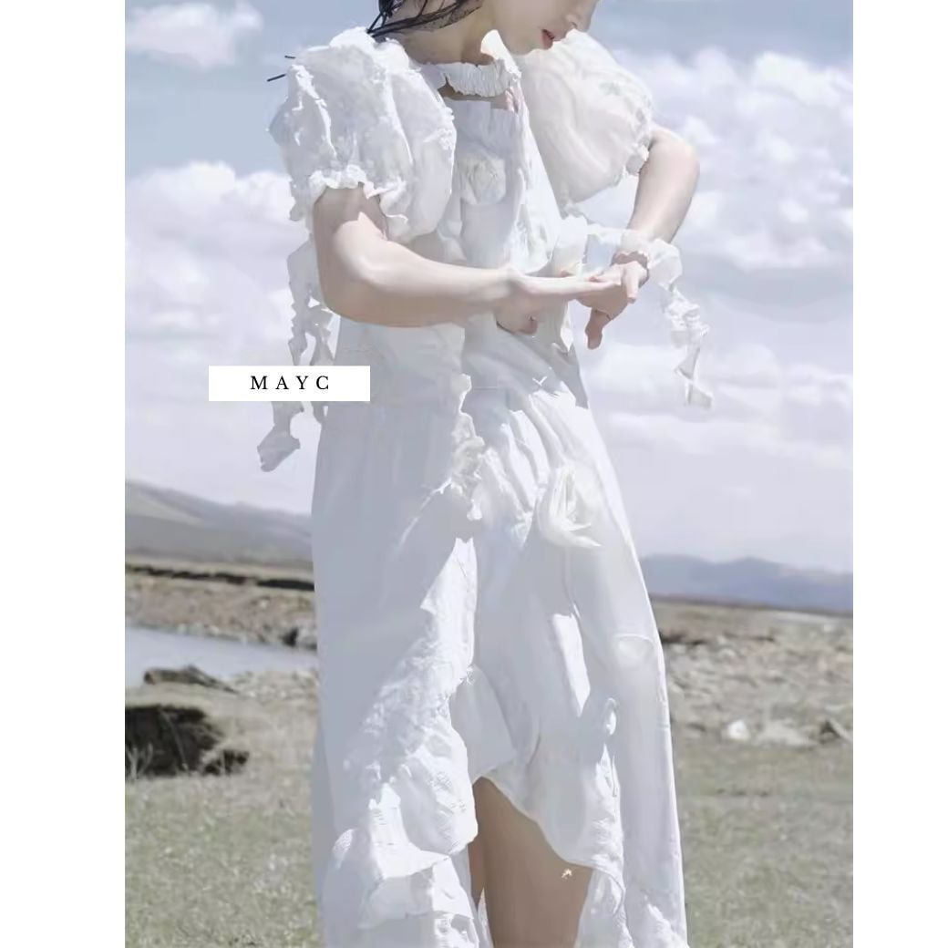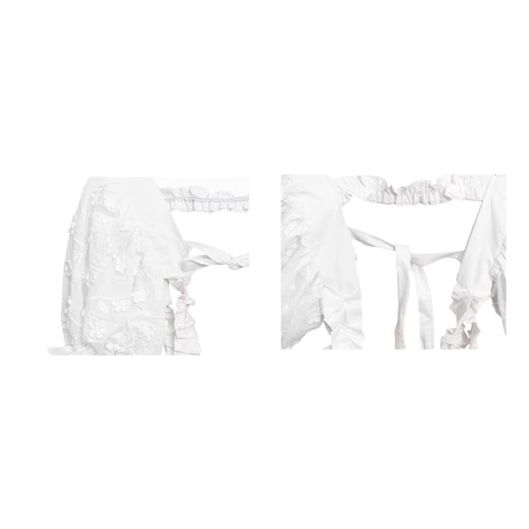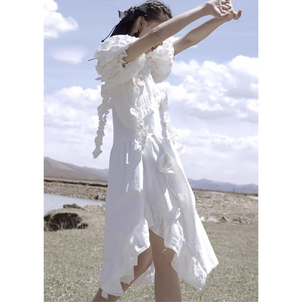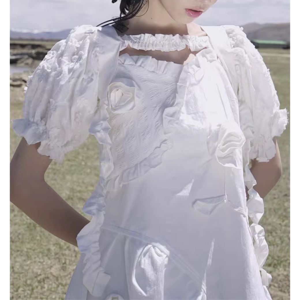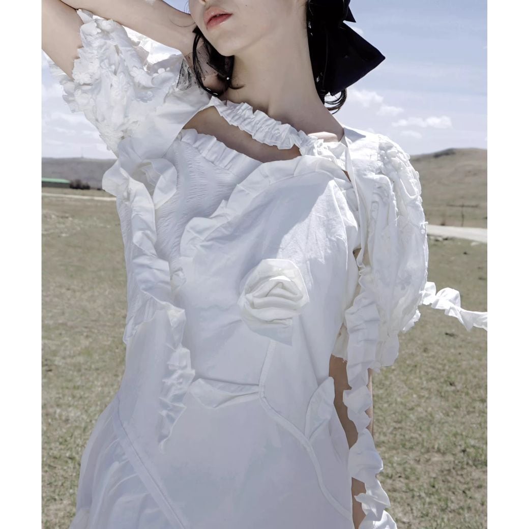 立体的なフラワーモチーフや、シャーリングたっぷりのデザインがかわいい♡