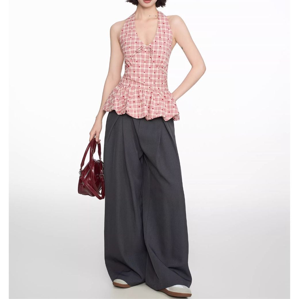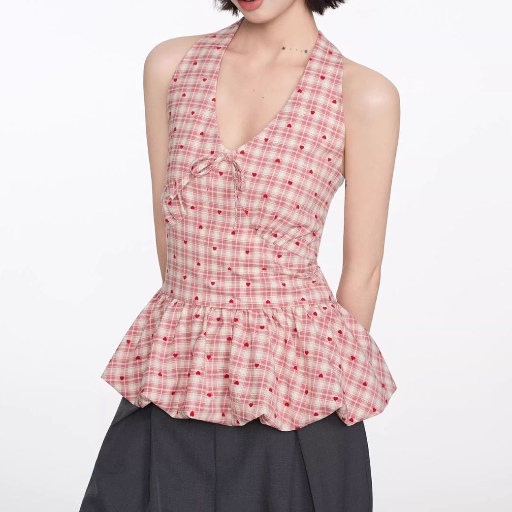 ハート×チェック柄のホルターネック*
