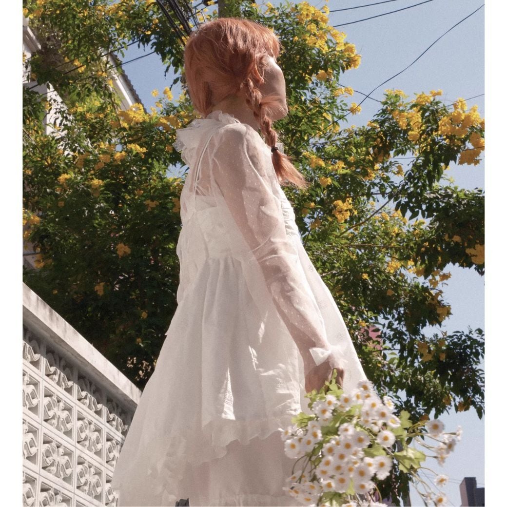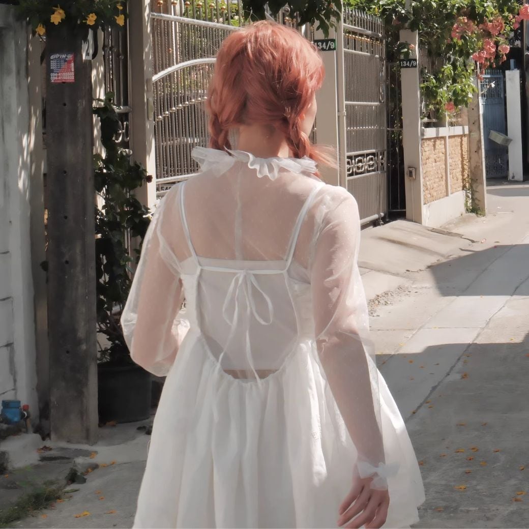 袖のリボンや、首のデザインで細部まで抜かりない一枚に。