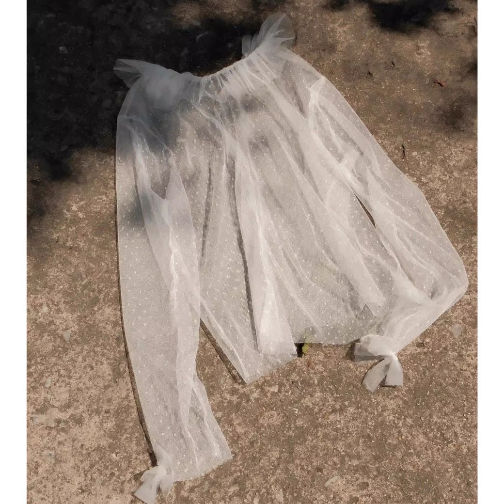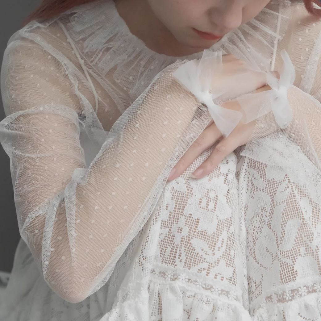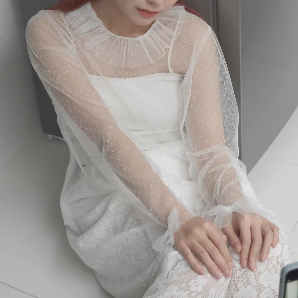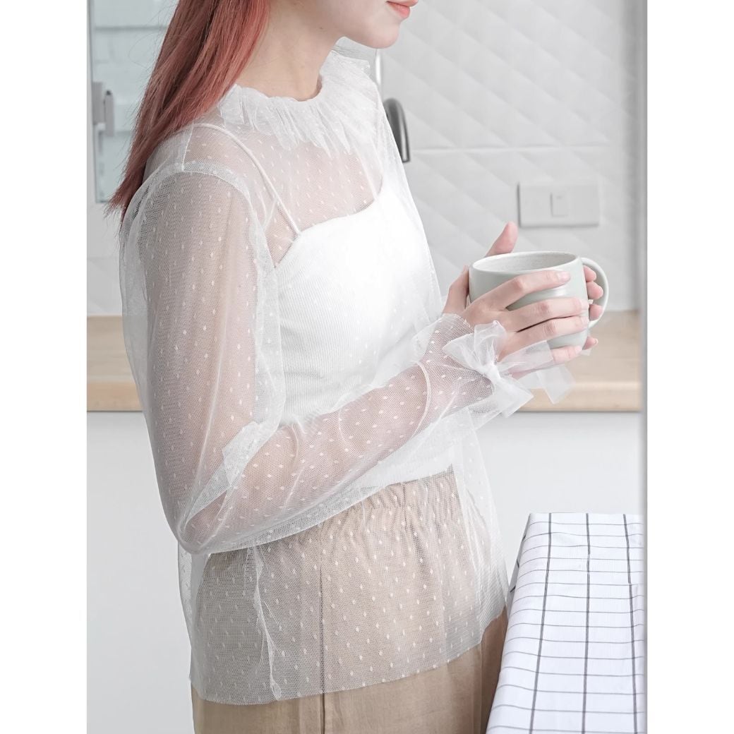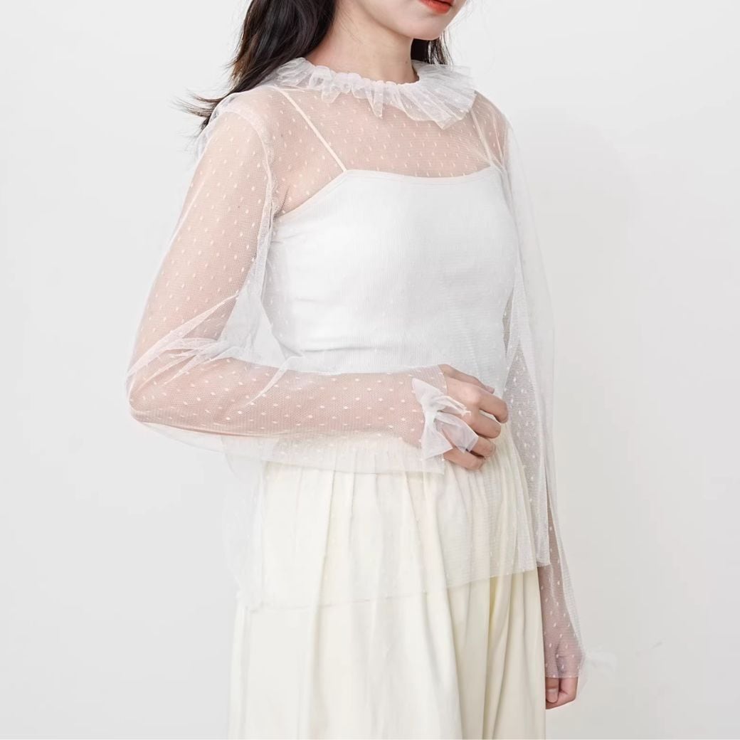 polka dot tulle pleated lace top