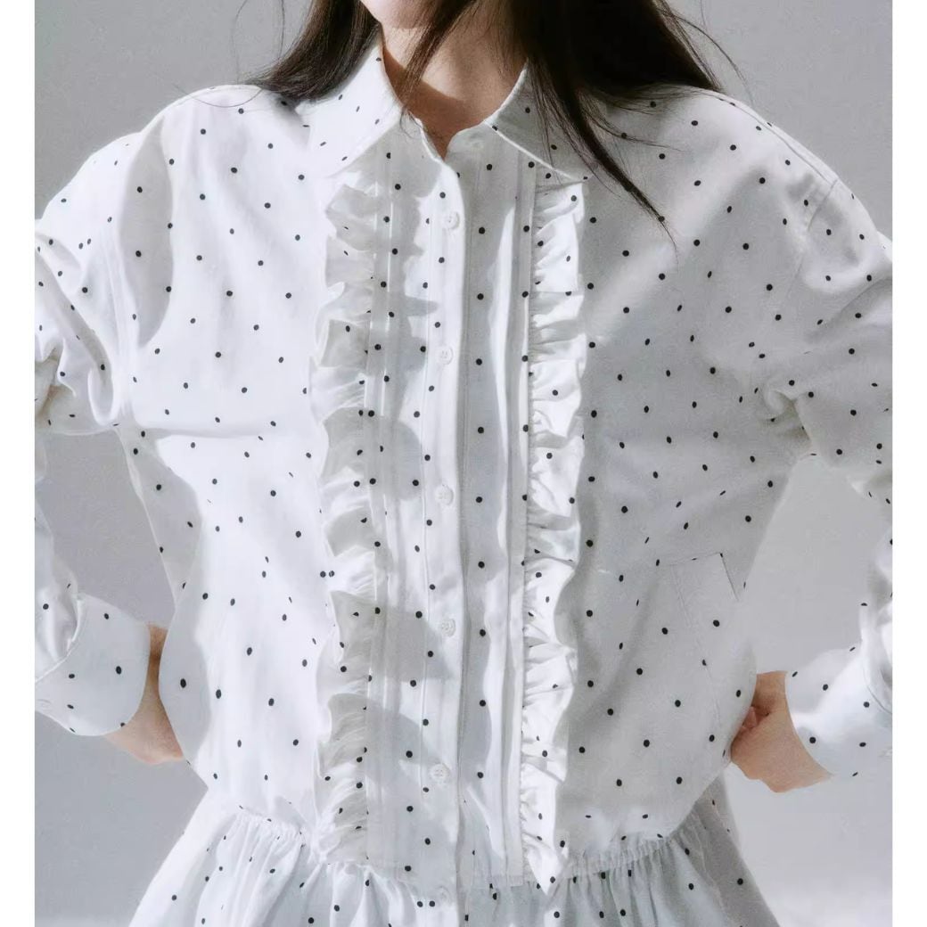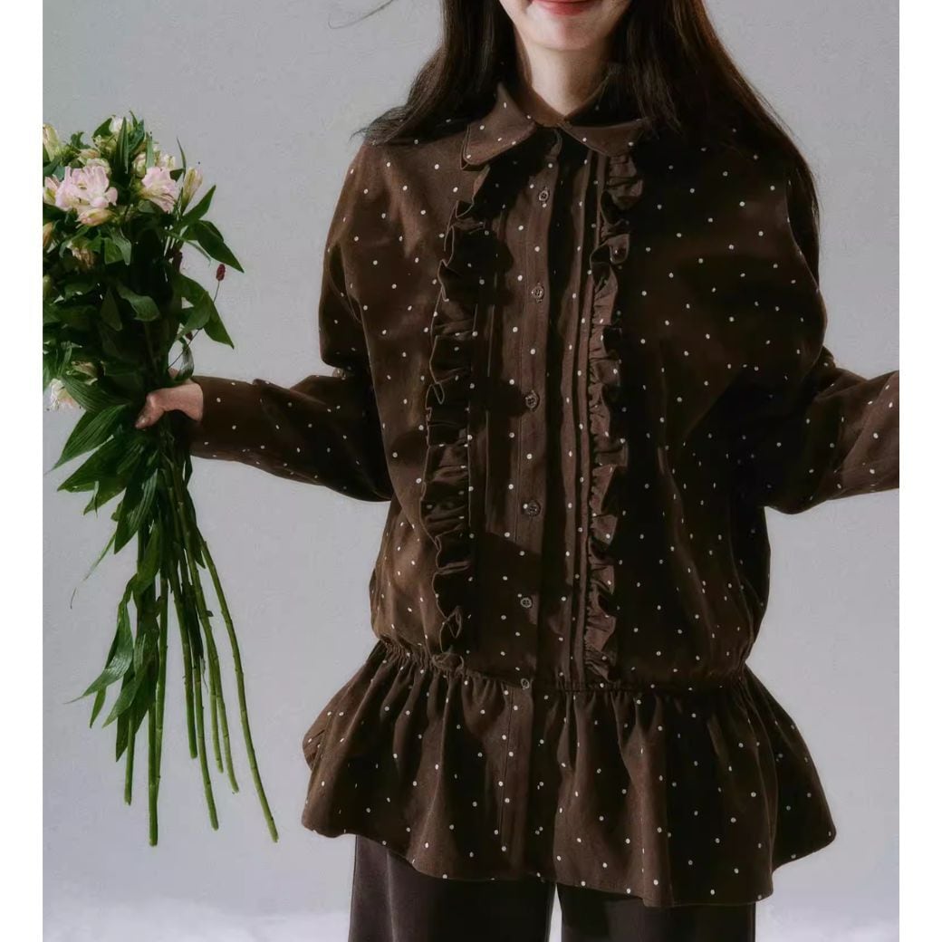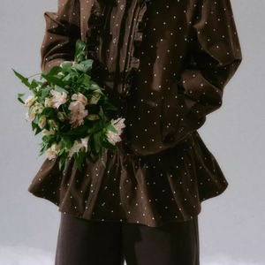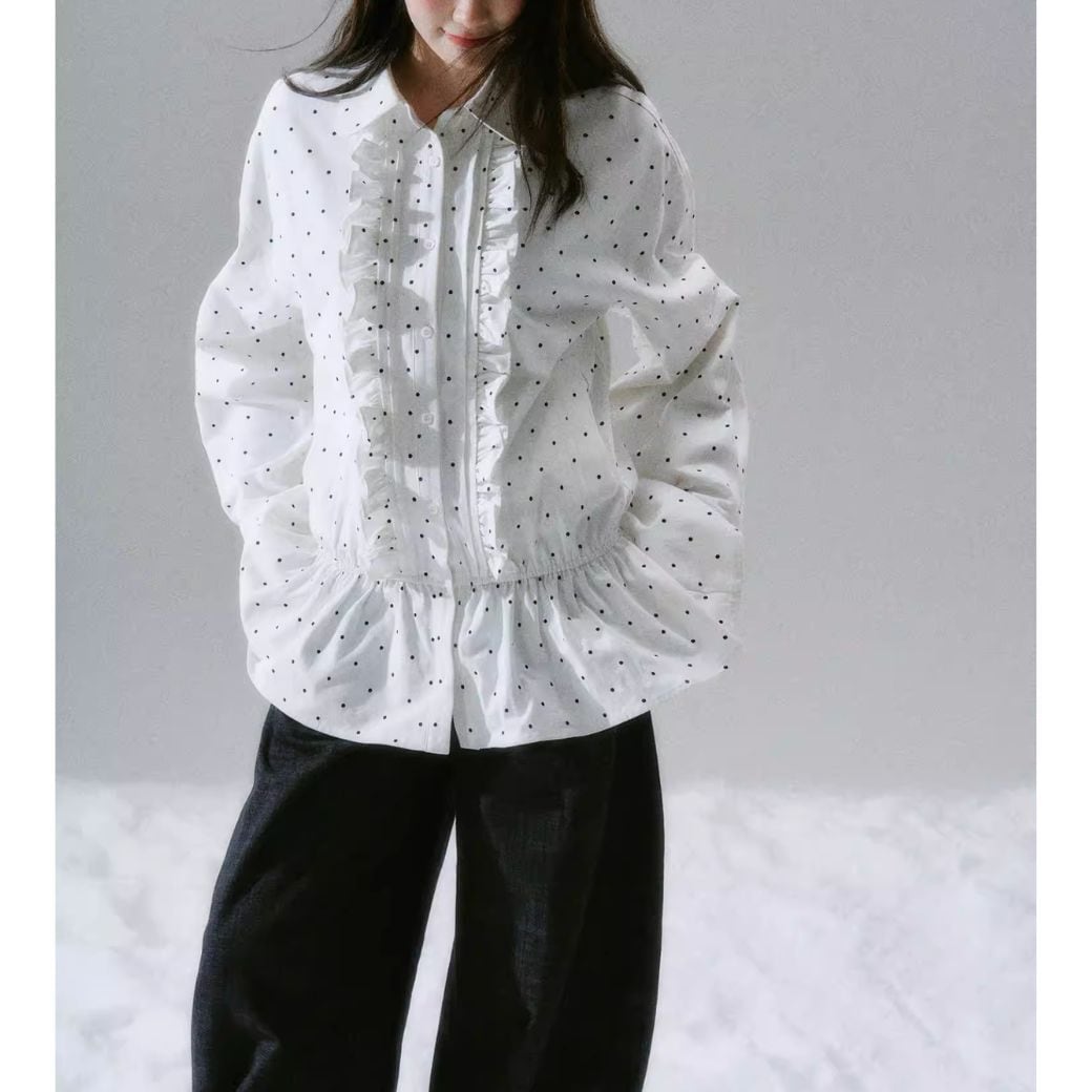 襟付きできちんと感もありながら、フリルでガーリーさもありつつ