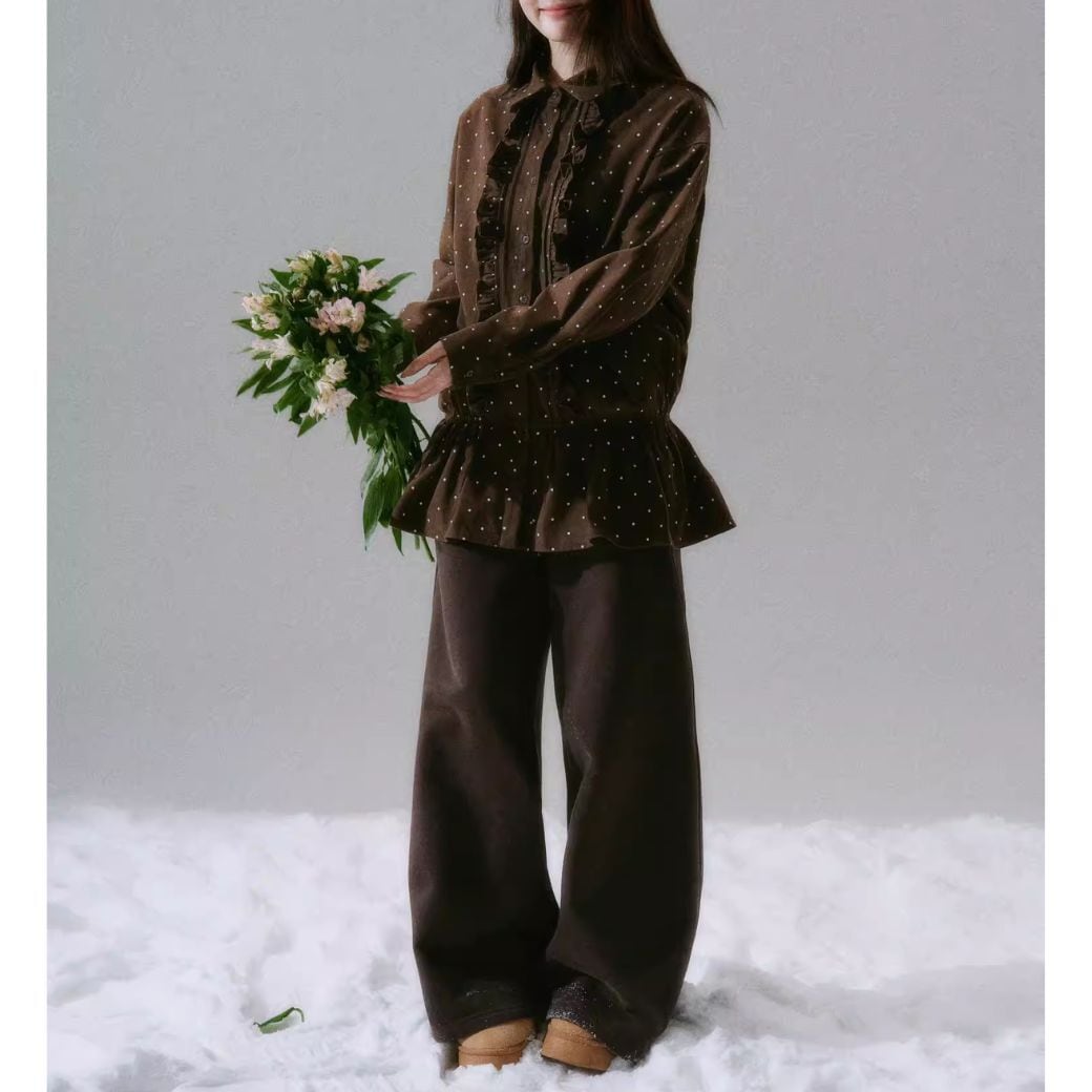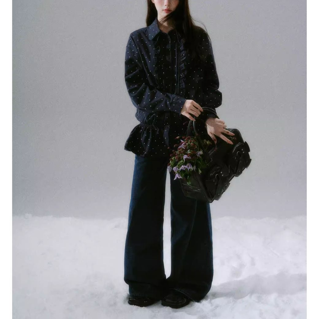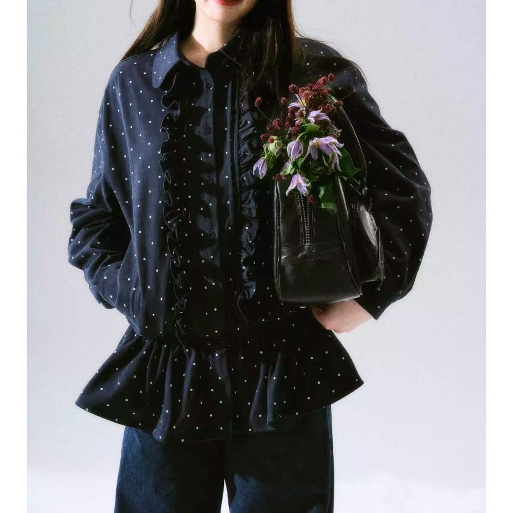 襟付きできちんと感もありながら、フリルでガーリーさもありつつ