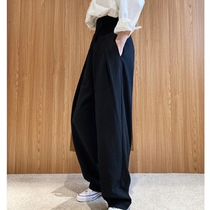 タックがたくさん入った、ハイウエストのボリュームパンツ。