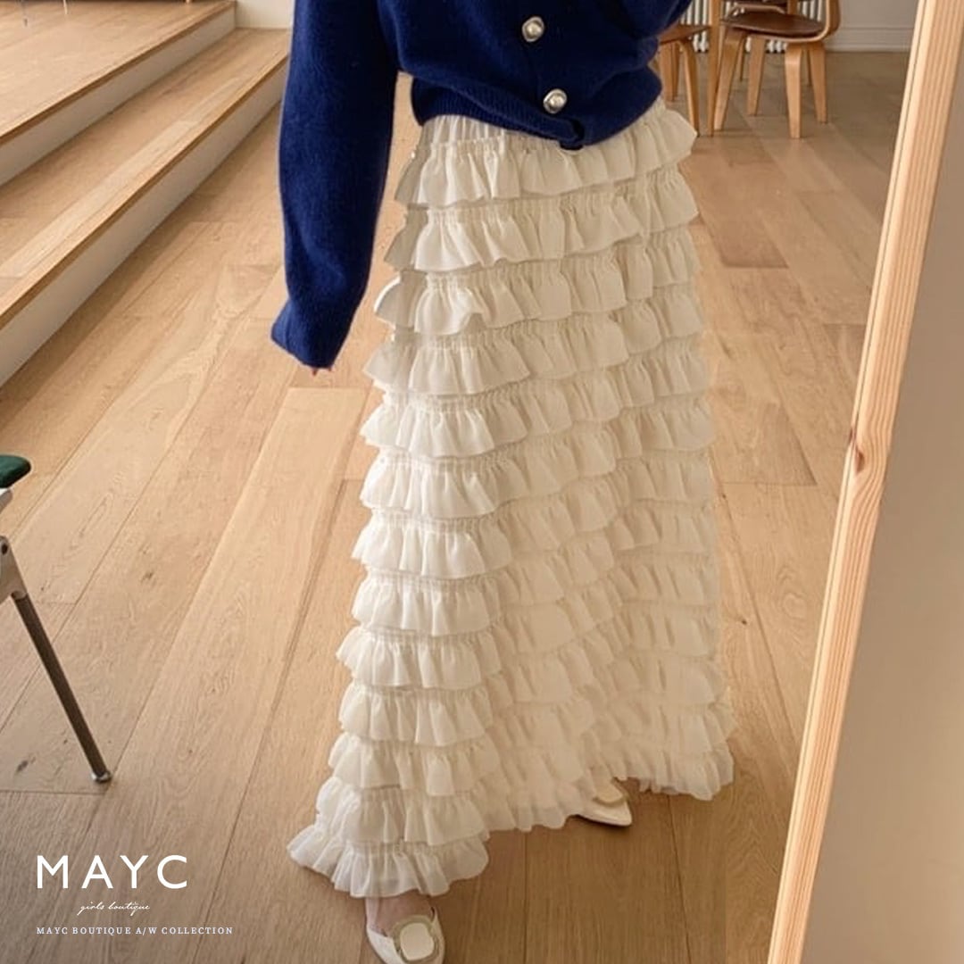 Aラインの落ち着いたシルエットで甘くなりすぎず大人可愛い印象に♪