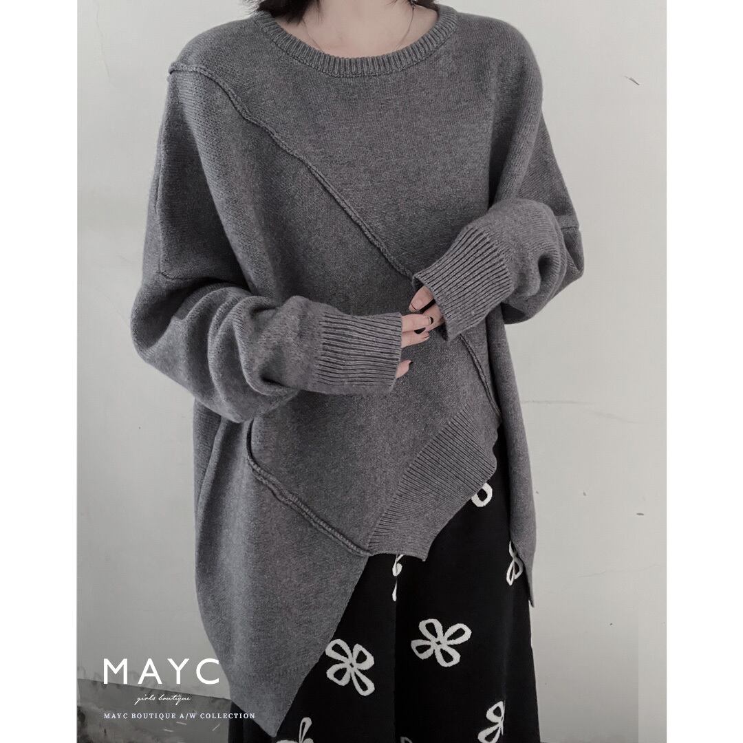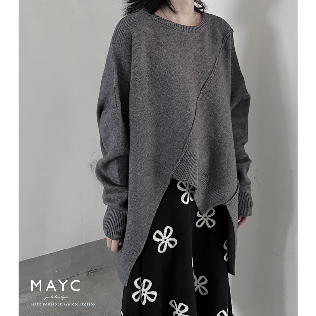 Irregular stitch round neck pullover <2colors>