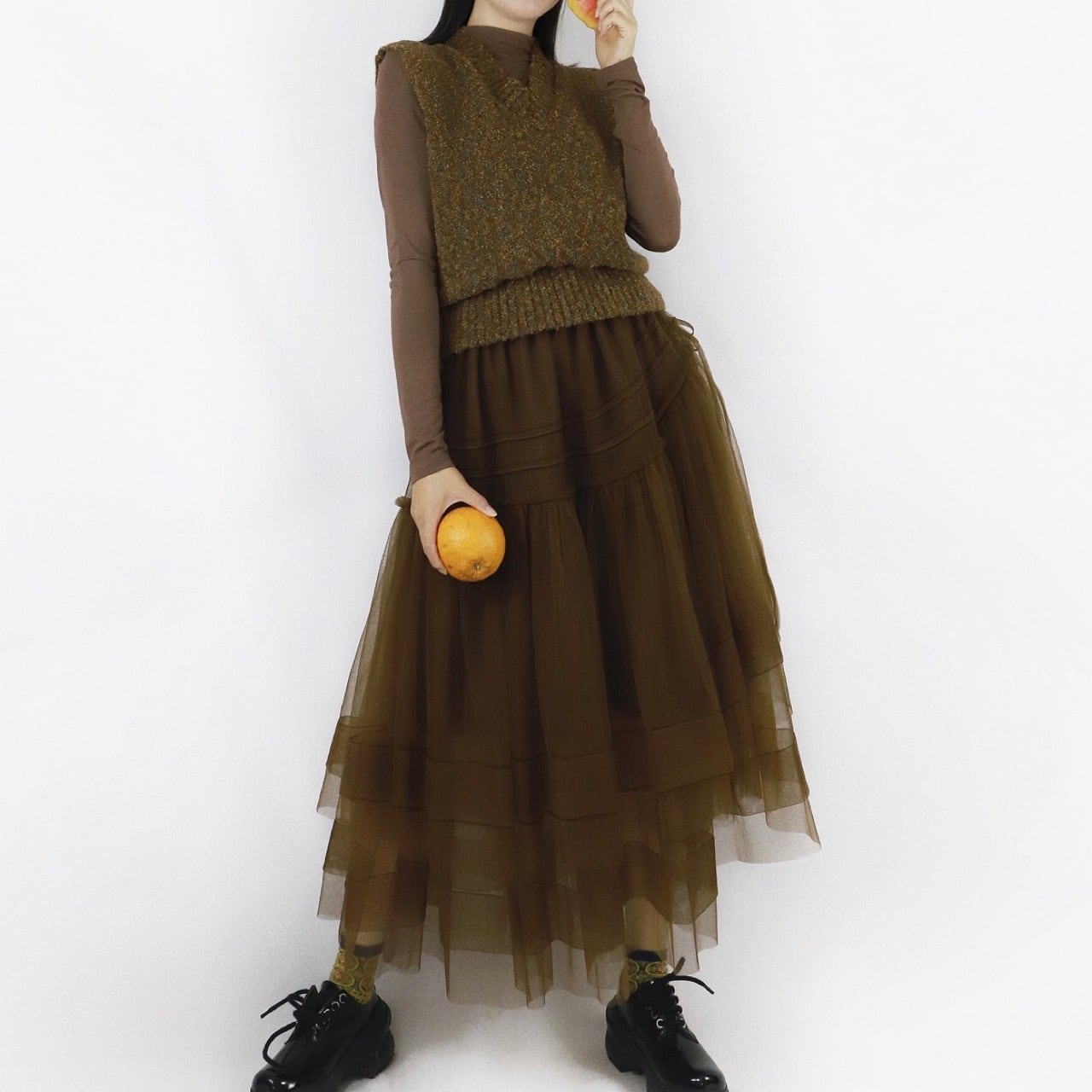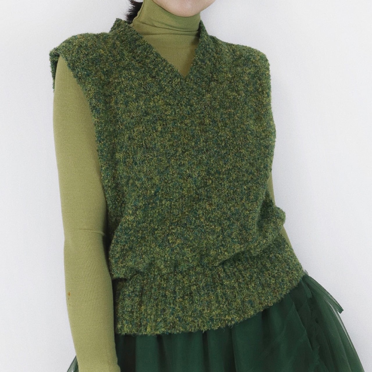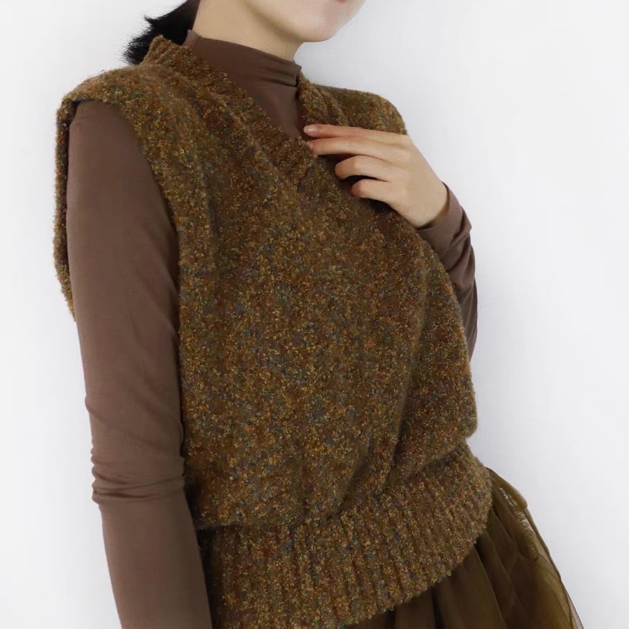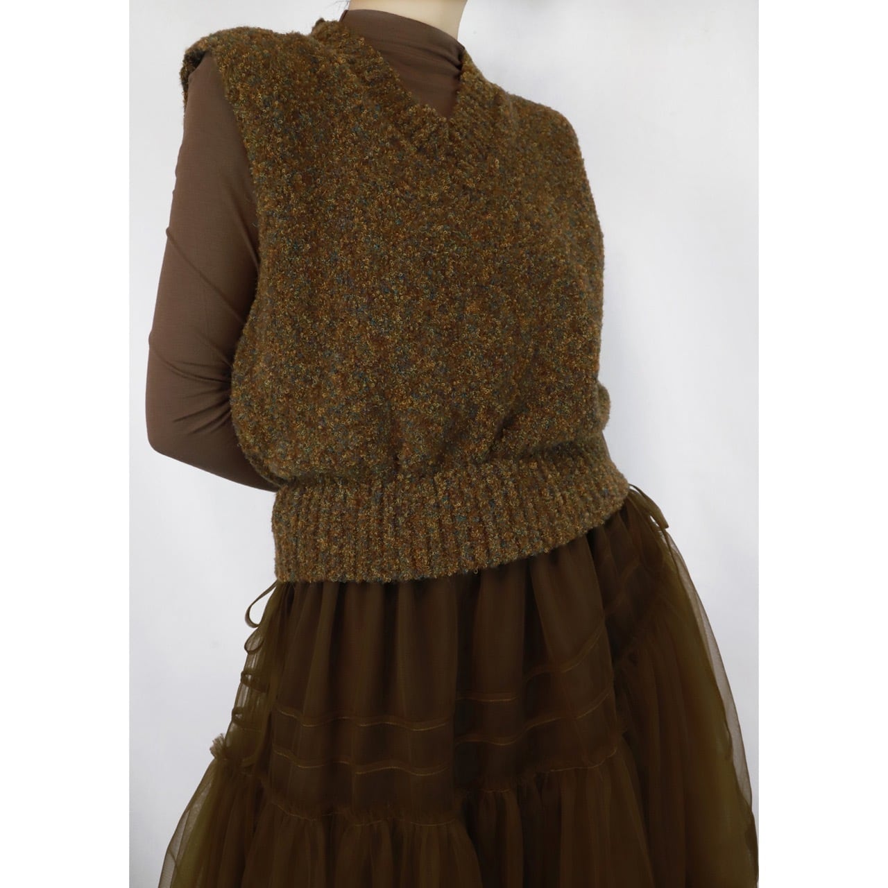 ミックスヤーンのベストと組み合わせてシーズンムードを高めてくれるアイテム◎