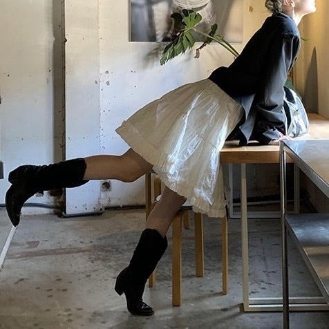 フレアに広がるシルエットでレッグラインを綺麗に見せてくれる1枚。