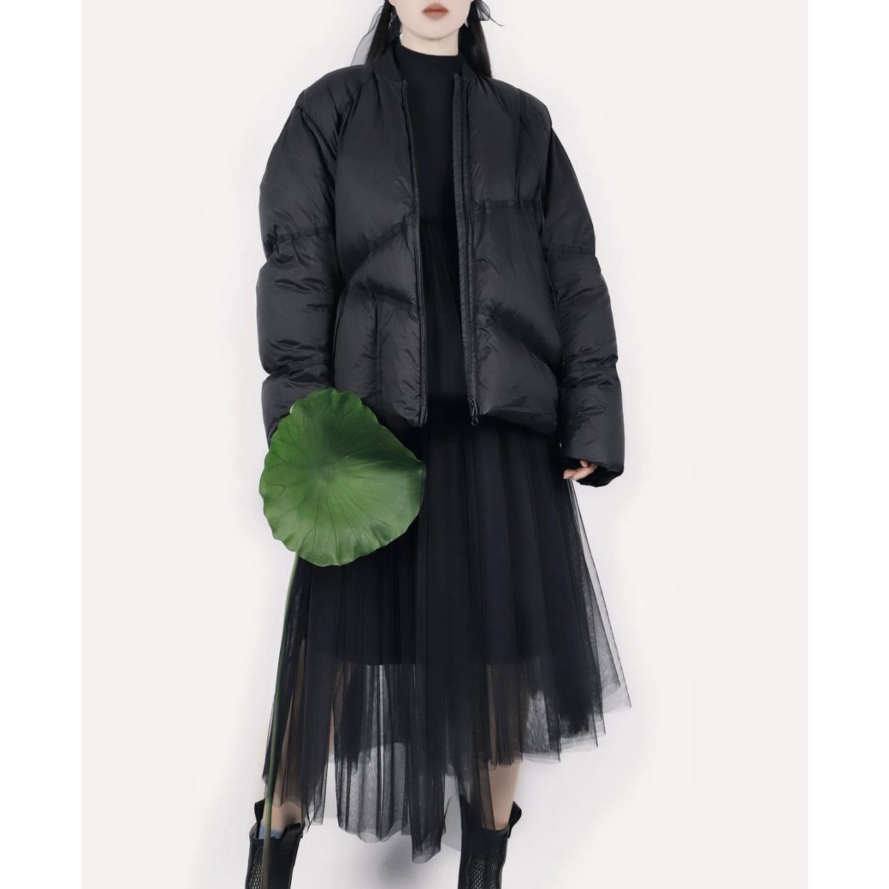 上半身はタイトに仕上げ、トレンドのボリュームアウターにも好相性♡