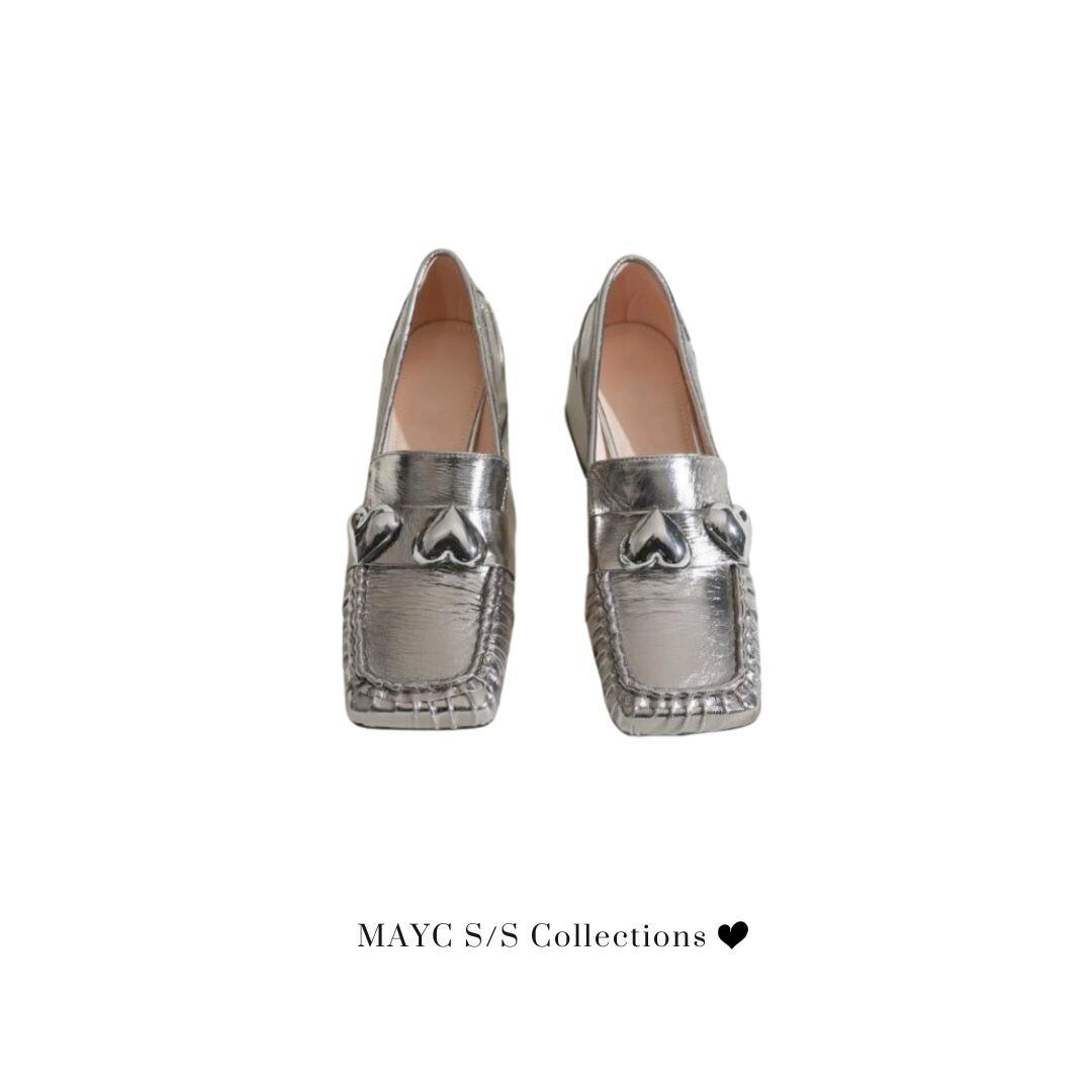 《お届けについて》 当shopの商品は海外より取り寄せ・発送となる為 ご入金から2〜4週間でお届けいたします。 ・・・・・・・・・・・・・・・・・・・・・・・・ ※2023/12/11 仕様変更のお知らせ※ 商品画像9枚目のように、靴の底にロゴが入ります。 ◆ サイズ(cm): ※海外製品につき若干の誤差がある場合がございます。 35 約22.5㎝ 36 約23㎝ 37 約23.5㎝ 38 約24㎝ 39 約24.5㎝ ヒール:約6㎝ <★スタッフ 着用レビュー★> 標準的なサイズ感で、普段24.5cmの着用スタッフも 問題なく39サイズでピッタリです* ◆ カラー silver / black ◆ 素材 シープスキン [ 商品管理番号:23AW_0194 ] 【 注意事項 】 誠に恐れ入りますが、ご購入前に以下をご確認頂き ご承諾の上お買い求めくださいませ。 https://shop.mayc.design/about ・服や靴のサイズが日本のサイズ規格より小さい場合が ございます。サイズに不安があるお客様は、普段より 大きめサイズをお選びください。 ・日本製とは検品基準が異なる為、縫製などが若干甘い 場合があります。 ・海外倉庫にて保管をしております。 在庫情報に時差が生じますため在庫切れや生産中止、 生産に遅れがある場合は、受注後でもキャンセル させていただく恐れがございます。 ・商品の色味は、お手持ちのスマートフォンの画面に よって実物と若干異なる場合がございます。 ・発送時期によりデザイン仕様(細部、素材など)の 変更がある場合がございます。 ・イメージ違いやサイズ交換等、お客さまご都合による 交換、返品は対応出来かねます。 ◆人気ランキング https://shop.mayc.design/categories/3257402 ◆新商品入荷中!/SALE情報をcheck https://shop.mayc.design ◆当店Instagram https://www.instagram.com/mayc_official/