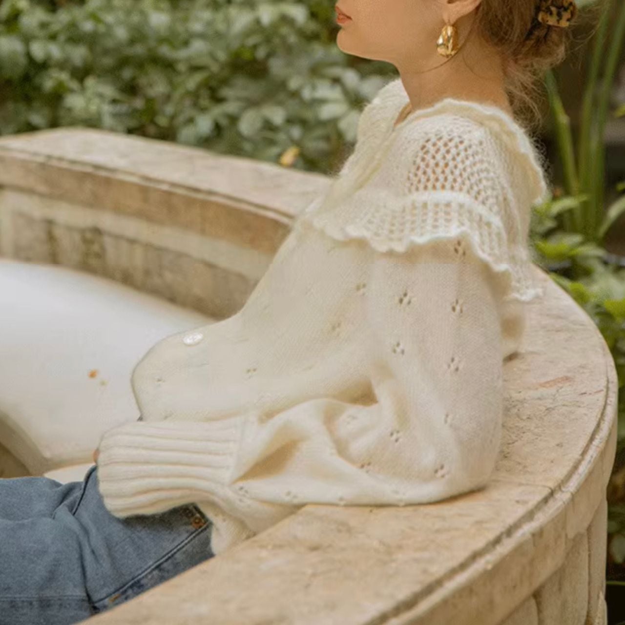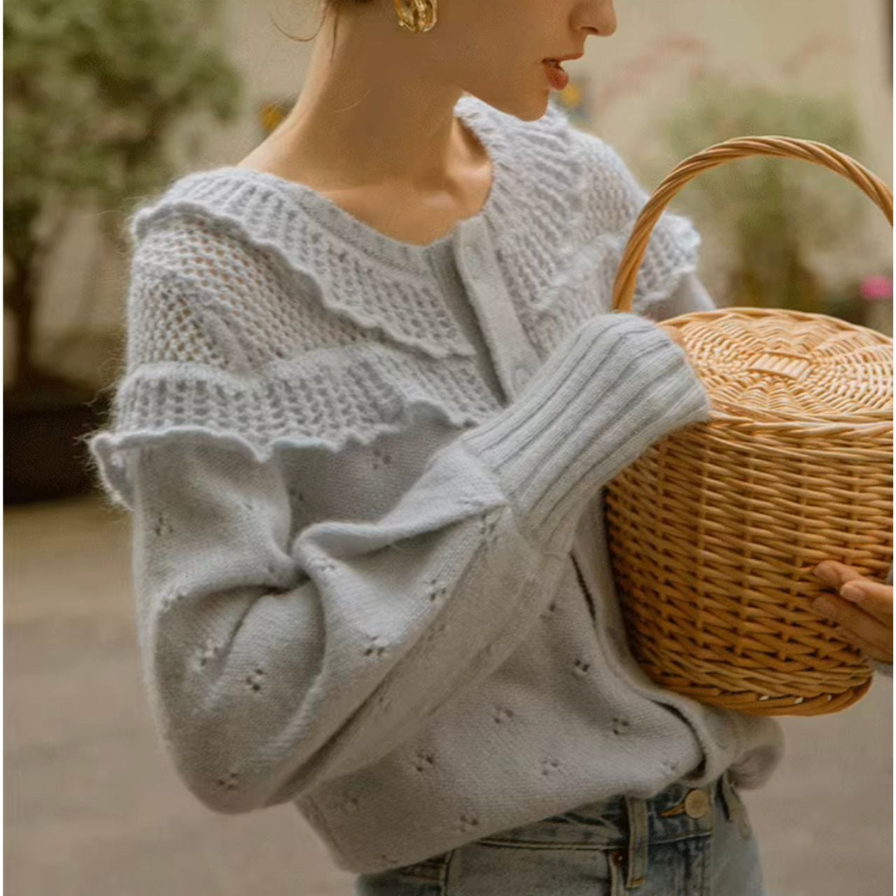 Foreign Balloon Sleeve Mohair Wool Cardigan <2colors>