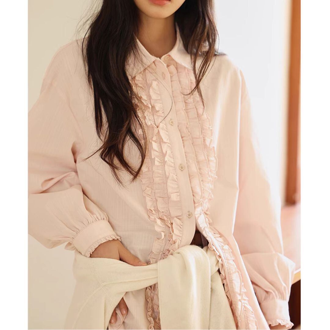 Vintage Like layered ruffled shirt <2colors>